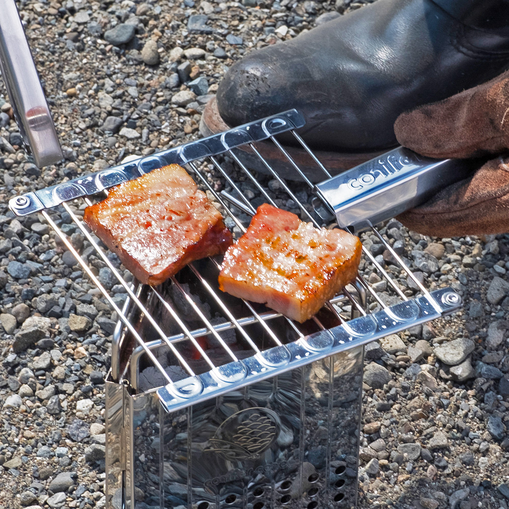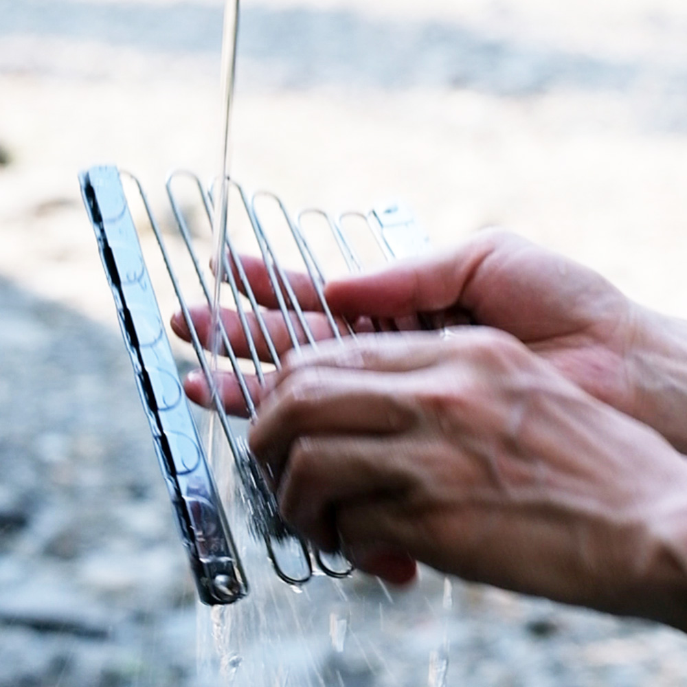 収納フォルダは食材を持ち運んだり焼き網を支えるハンドルに