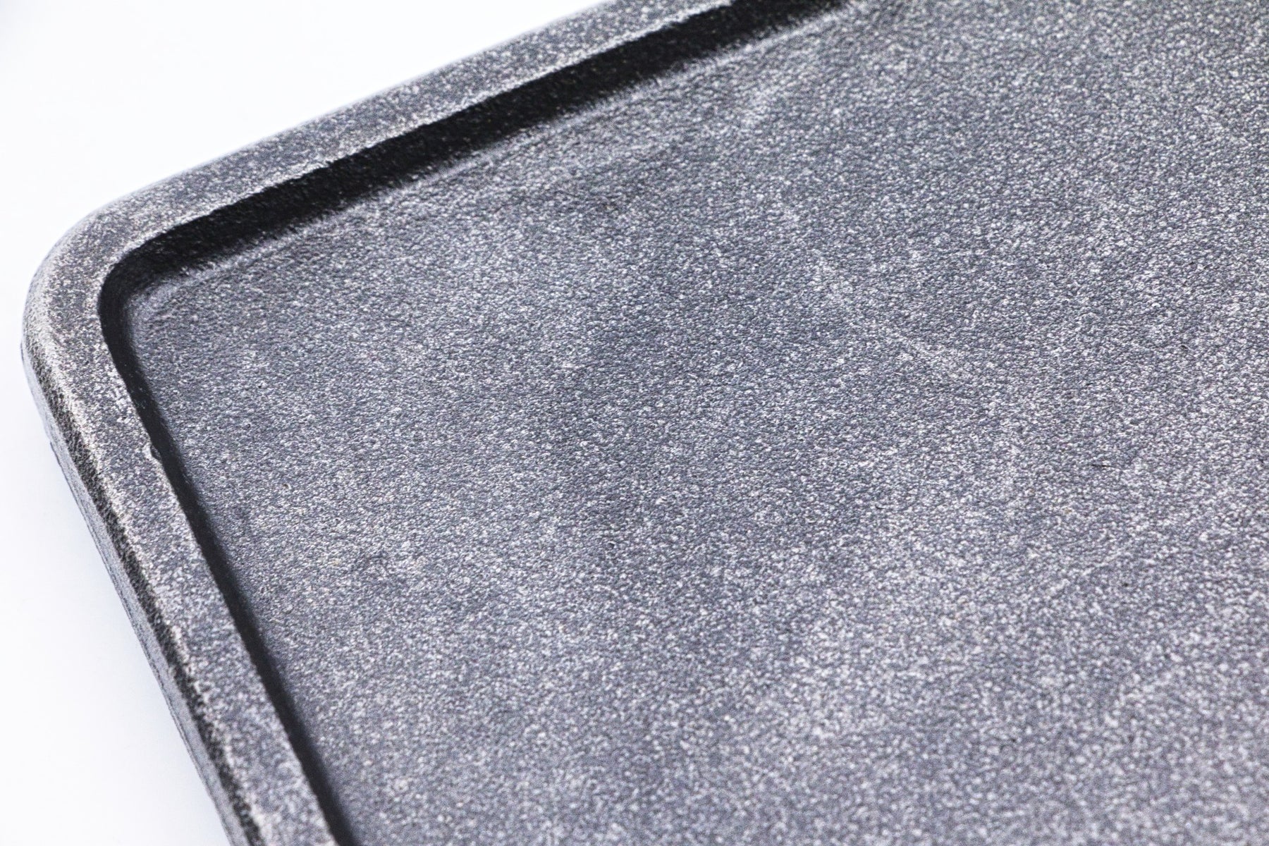 通常の鉄板やフライパンと比べ、鋳鉄は熱伝導が穏やかで蓄熱性に優れており、油馴染みの良さが特徴です。均一に火を通しやすく、料理の美味しさを最大限に引き立てます。
