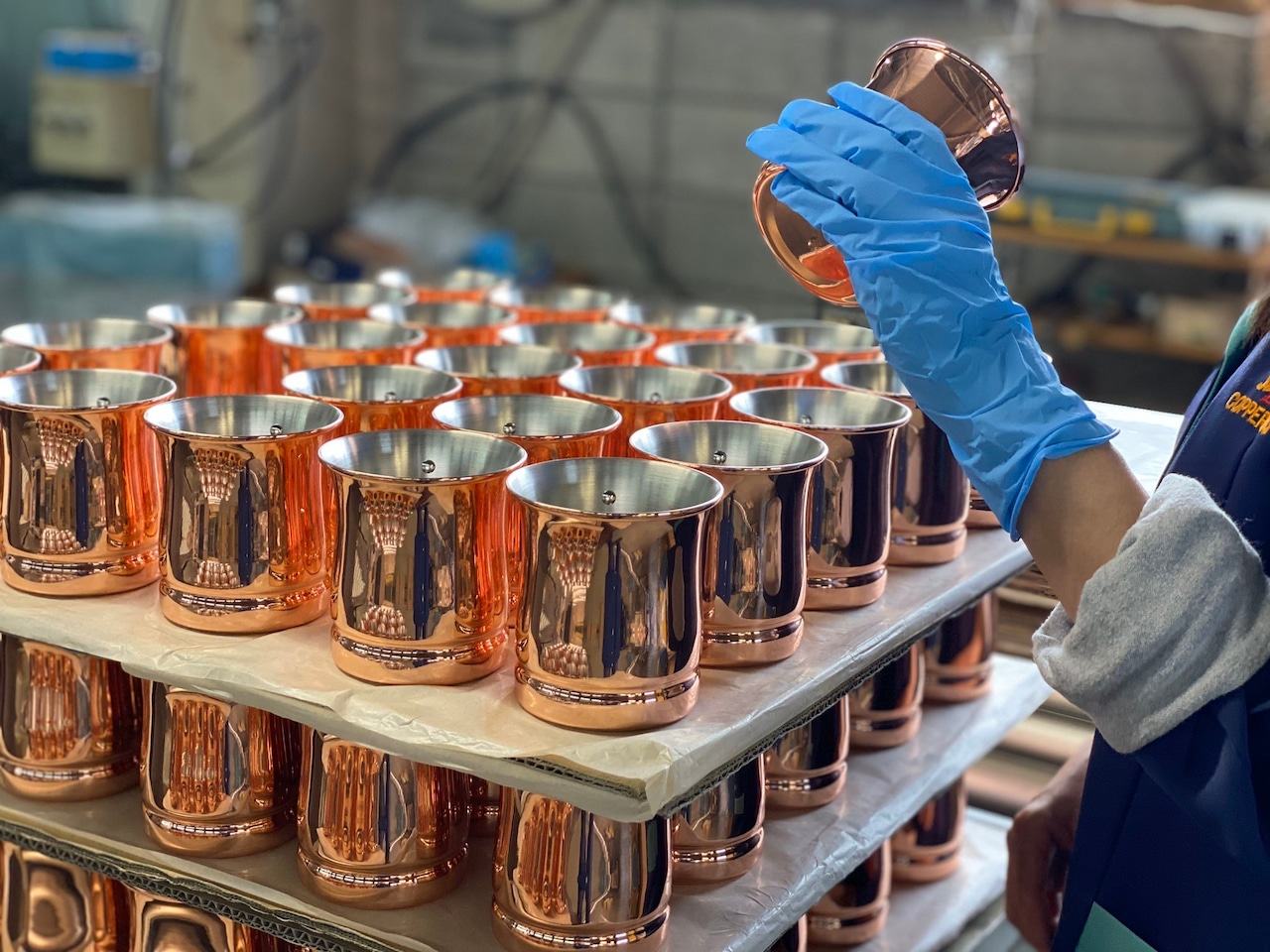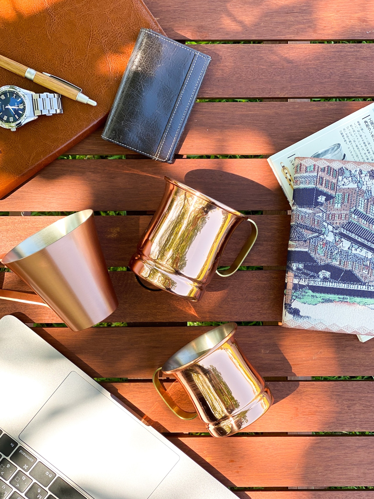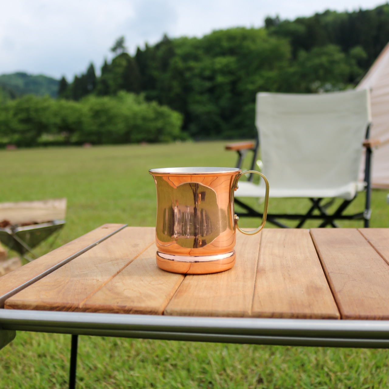 銅の持つ熱伝導の良さで冷たい飲み物を注いだ瞬間に爽快感抜群、アウトドアシーンで大活躍。