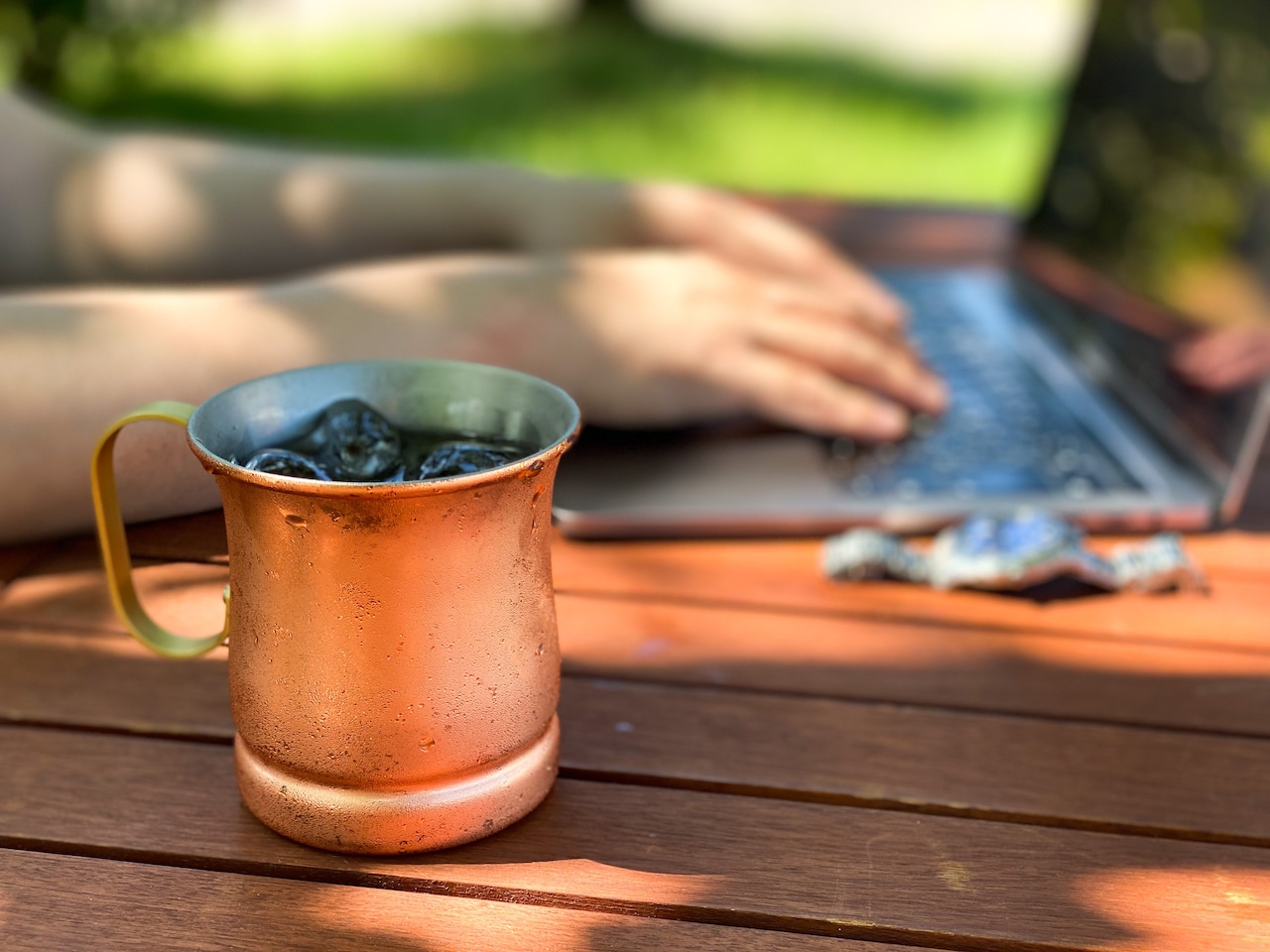 じりじりと焼ける日差しの中や、蒸しかえる夜でも、銅製のマグは注いだ瞬間から飲み物と同じキンキンの冷たさに。