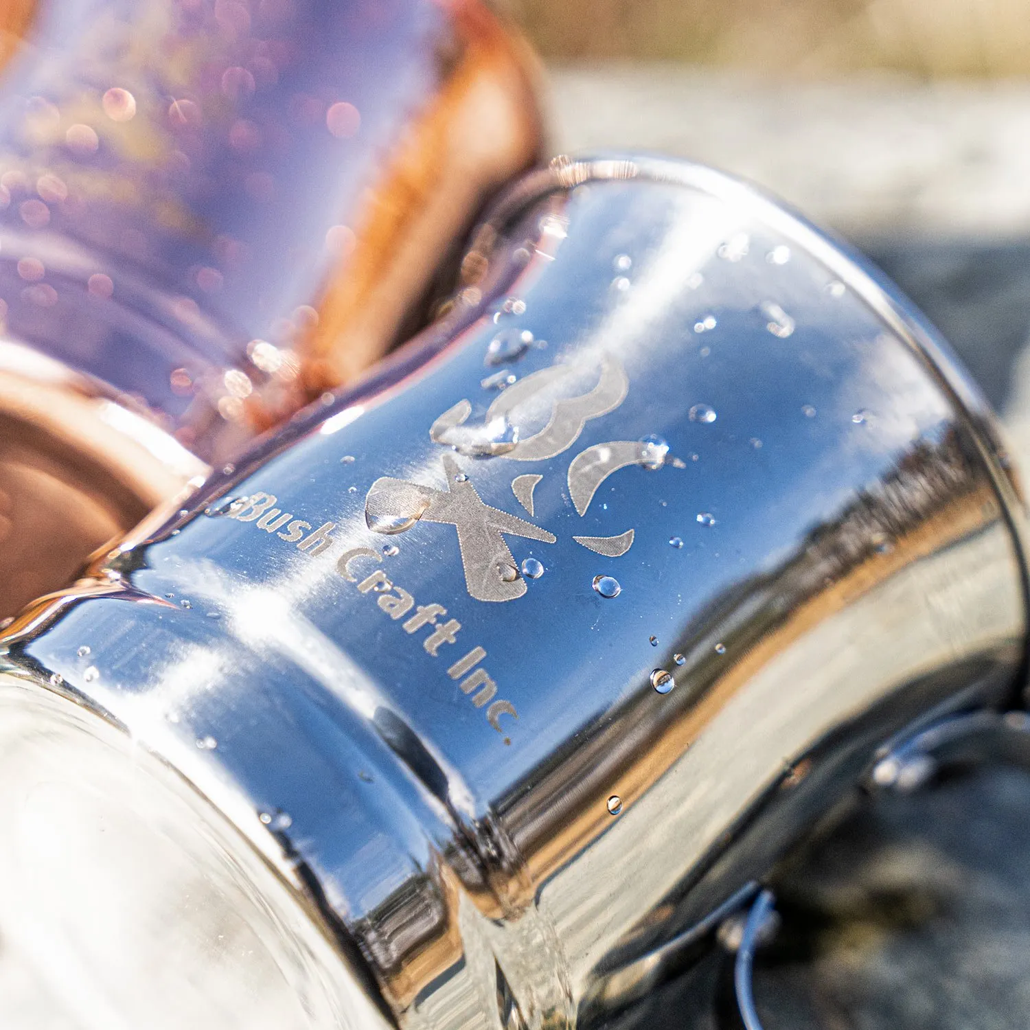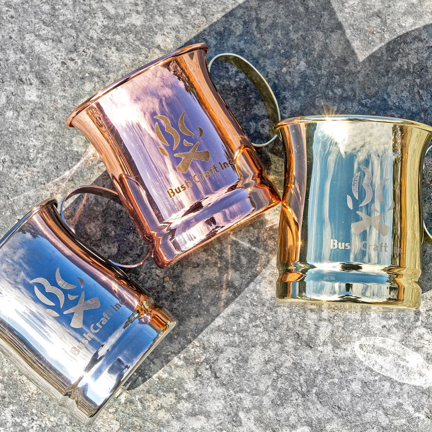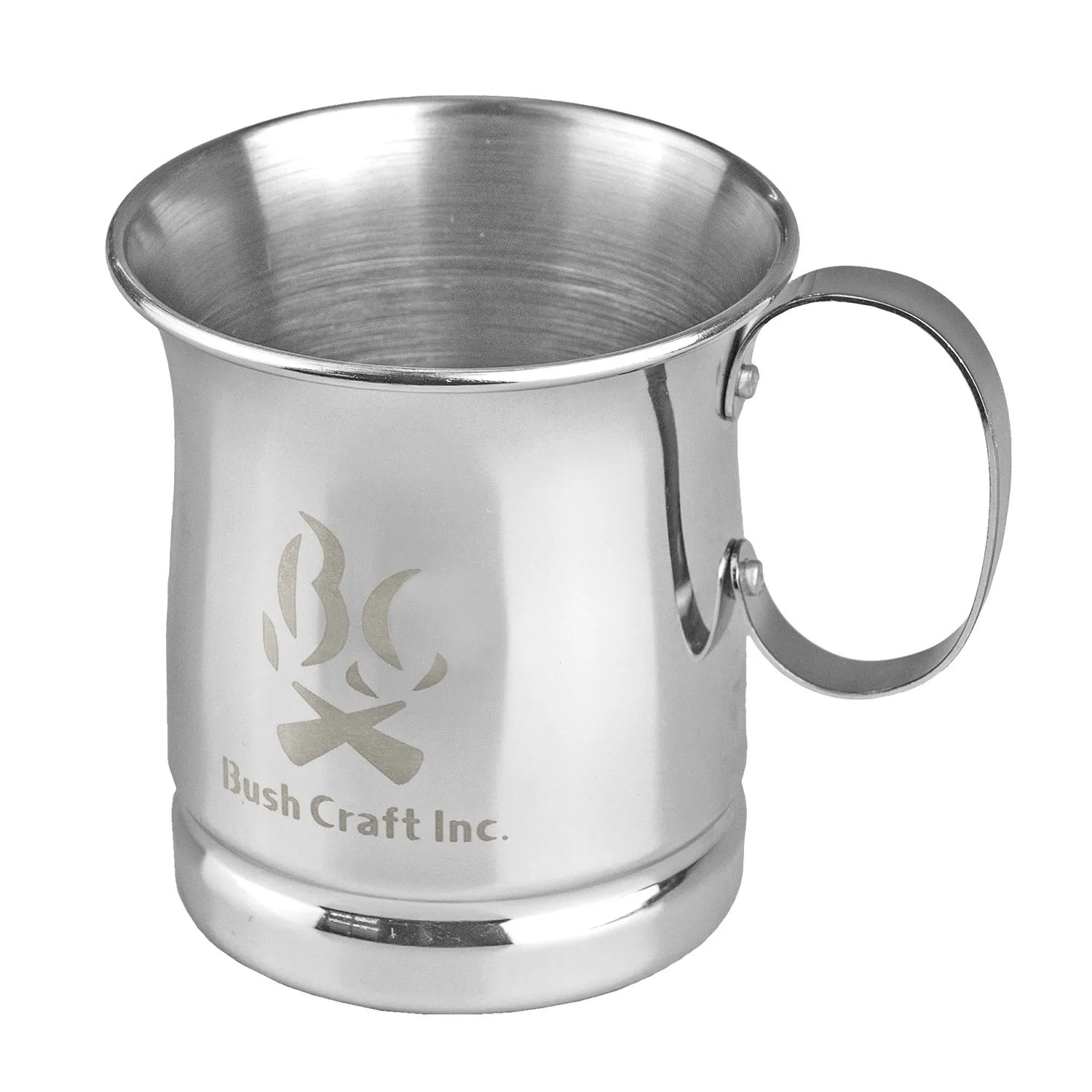 Bush Craft Inc.のロゴを入れたステンレス製のメッキ加工マグカップです。