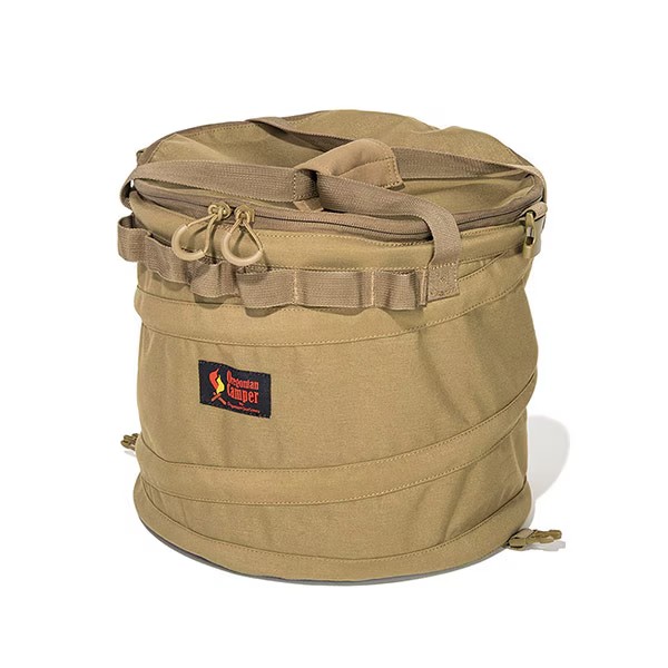 スタンダードタイプよりもワンサイズ小さいモデル、テントイン ポップアップ トラッシュボックスです。テント内での使用をイメージした、折りたたみ式のゴミ箱。内側のスナップボタンで、ゴミ袋を固定することができます。袋を分けて装着すれば分別も可能。このミニサイズなら、ご家庭にあっても違和感なく、普段使いできるアイテムです。