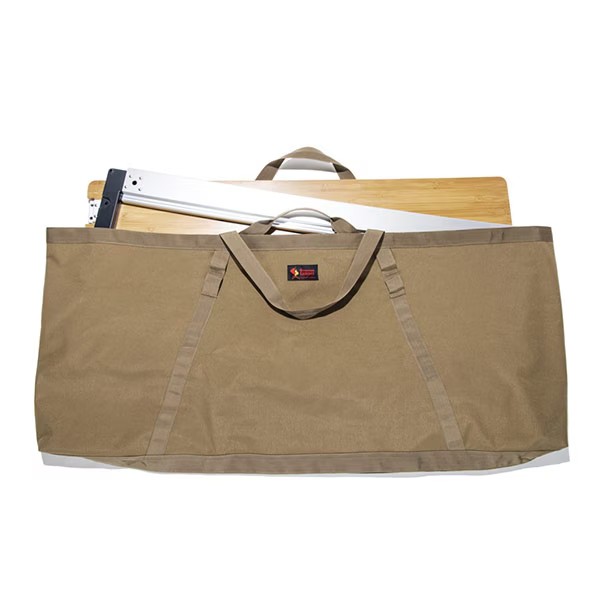 ラージサイズを超えるスーパーサイズのグリルテーブルキャリーです。ラージよりもさらに30㎝長い、横幅125㎝でスノーピーク社のIGTロングなど、長尺の大型ファニチャーにも対応できるサイズです。内側は、灰などの汚れがシミ込まず、落としやすいPVC素材を使用し、底面は2重加工で丈夫な仕上がりとなっています。外側には、便利なネビュラチェーン付き。こちらのリニューアルタイプは、ショートハンドルと広がり防止のフックストラップが追加され、さらに使いやすくなりました。