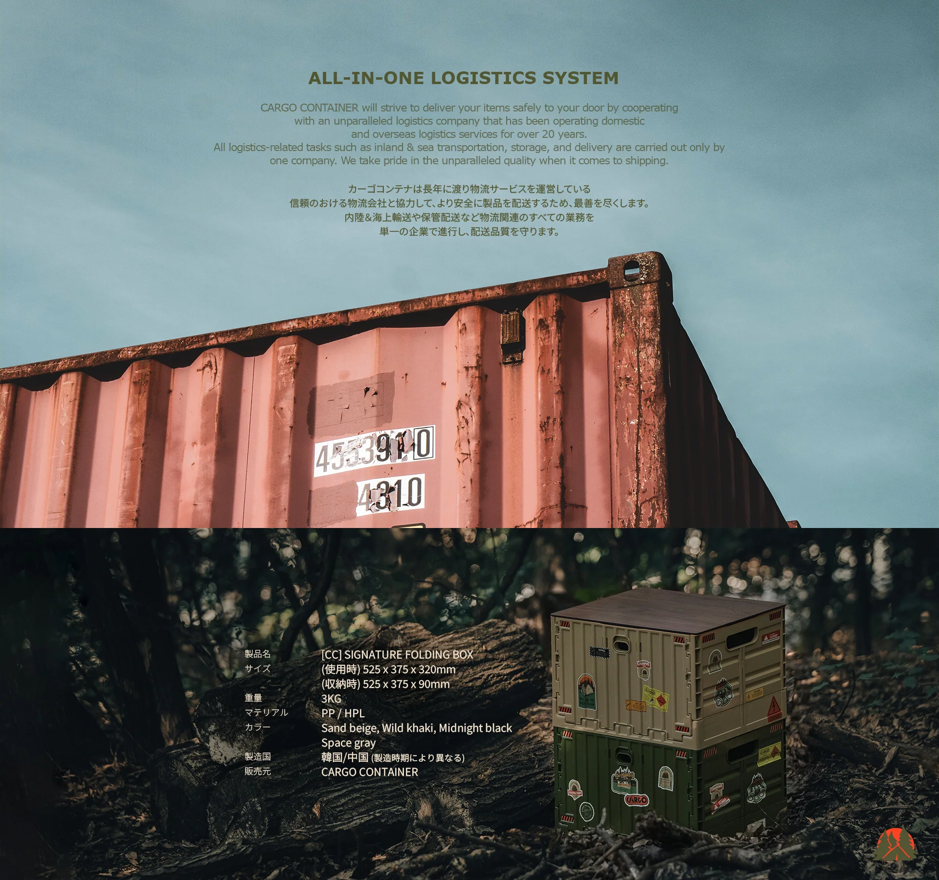CARGO CONTAINER SIGNATURE FOLDING BOX カーキ