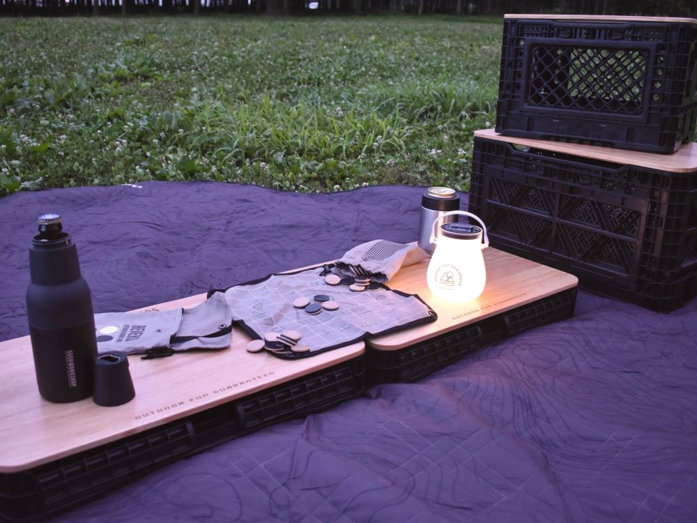 別売のトップボードを組み合わせればテーブルやイスとして使用可能。