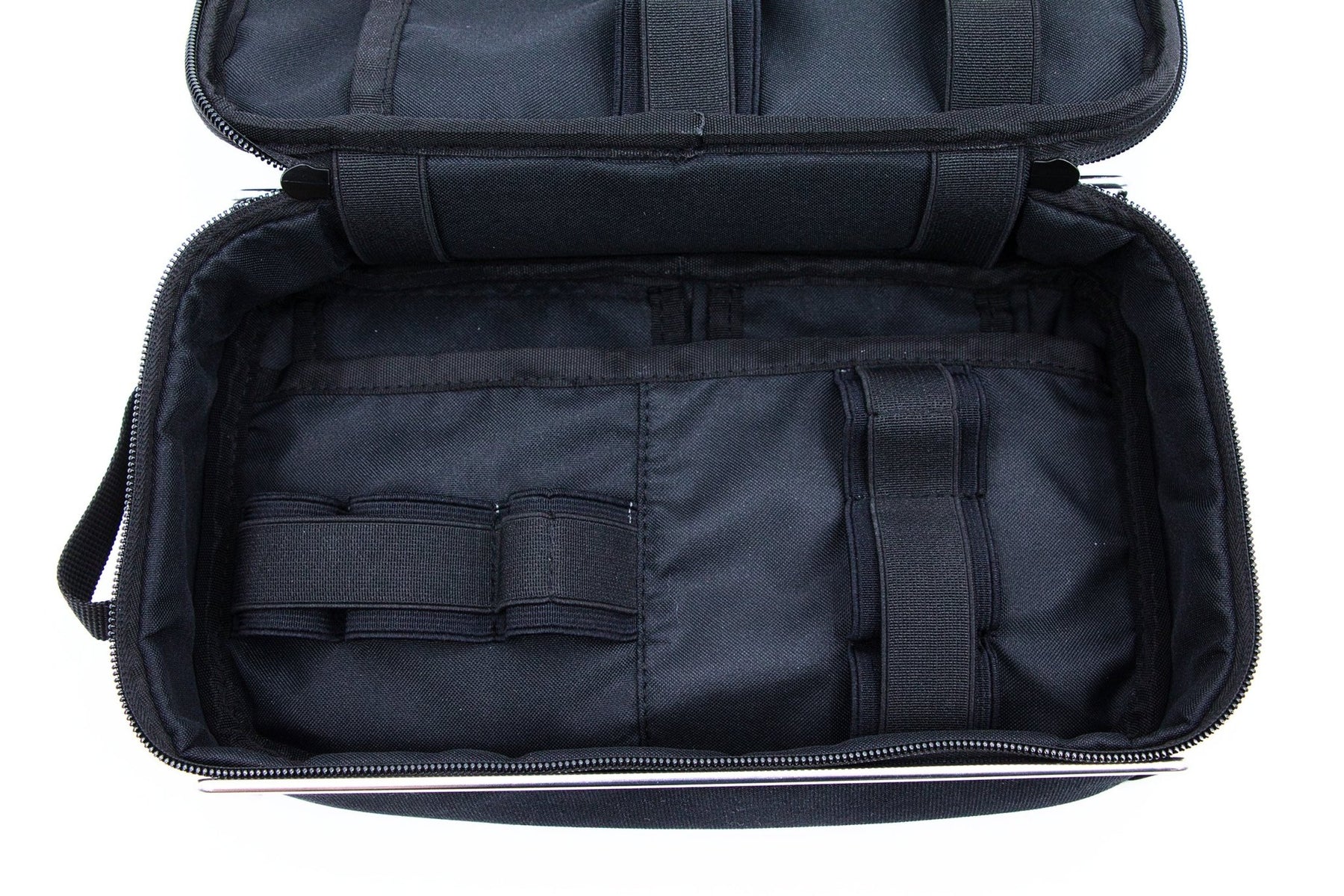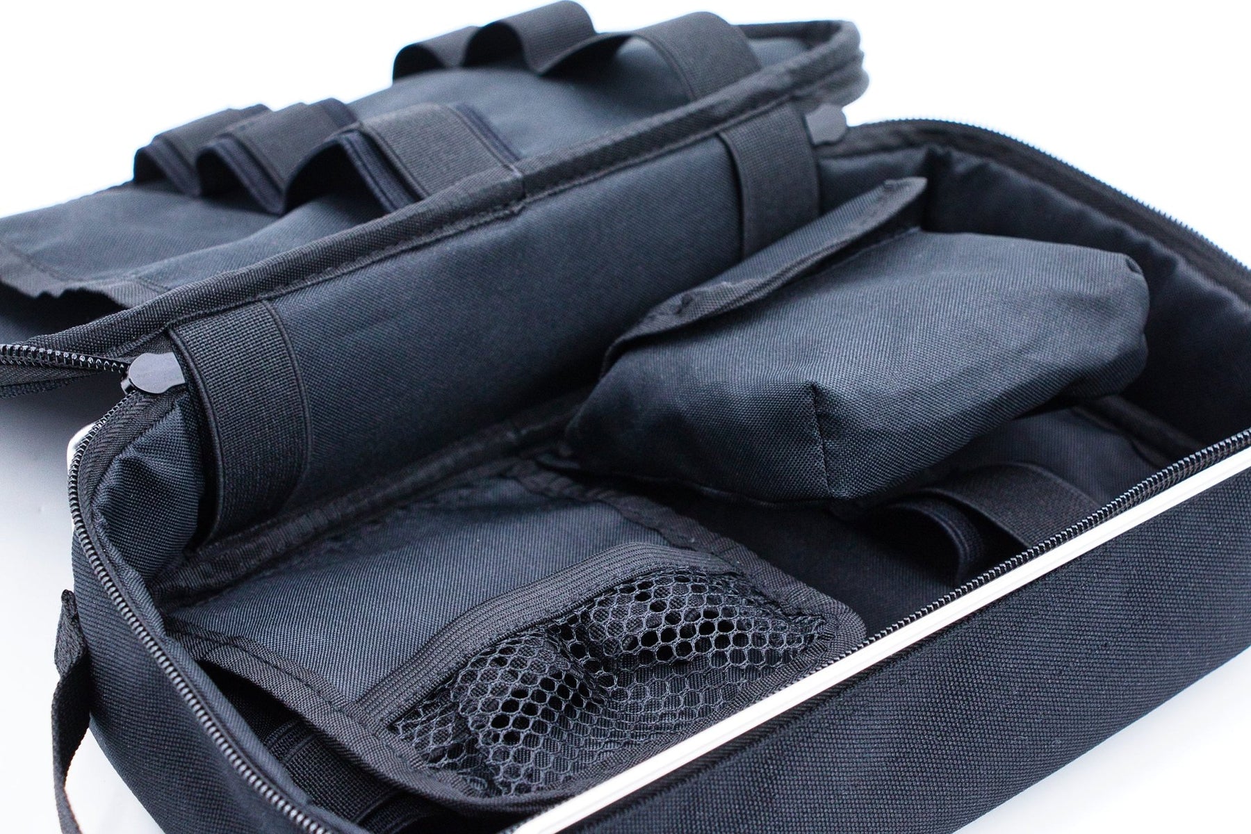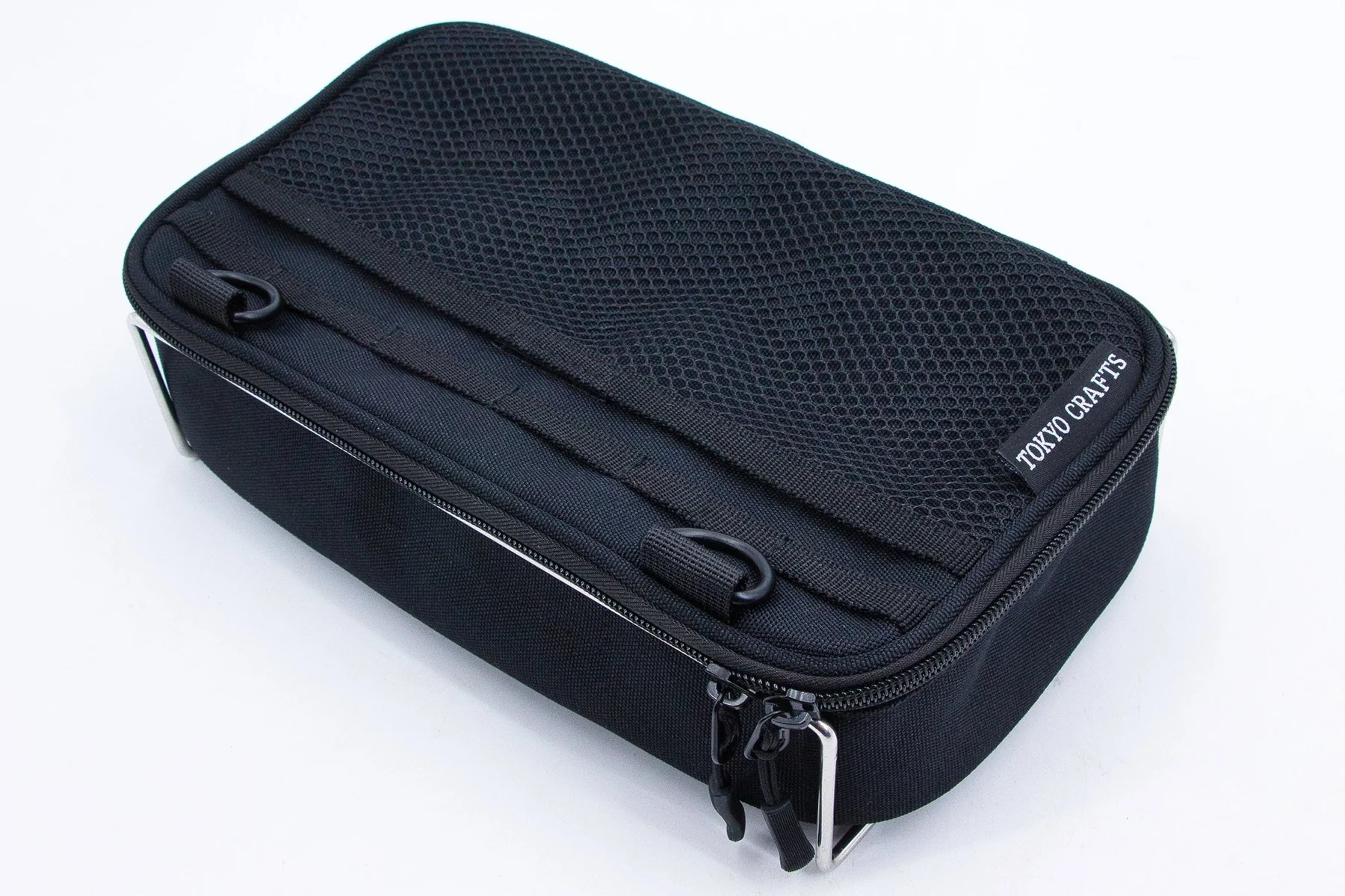 道具を纏めておくのに便利なオーガナイザーですが、テーブルに置いたり吊るすと場所が固定されてしまい、使いたいときに手元に道具が無いなんて事もしばしば。焚火の正面で炎の世話をするときも、少し離れて炎を眺める時も、就寝前に「おこもり」する時も、いつでも愛用の道具を手元におけるというコンセプトのオーガナイザーです。