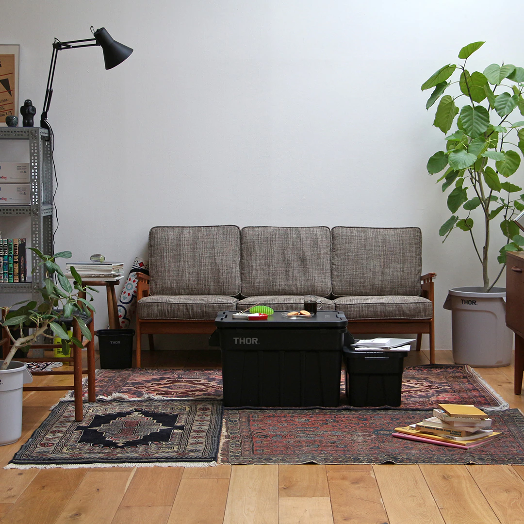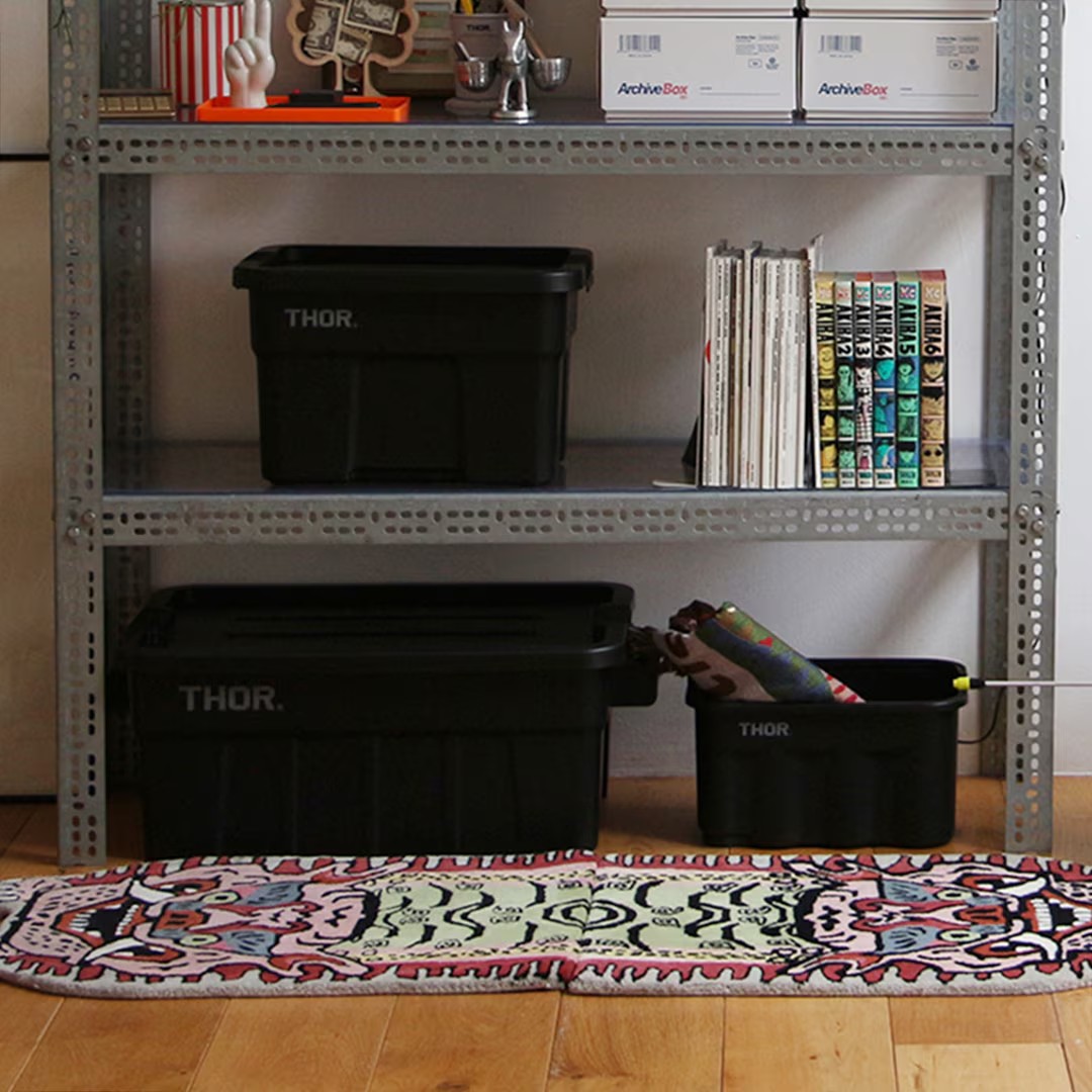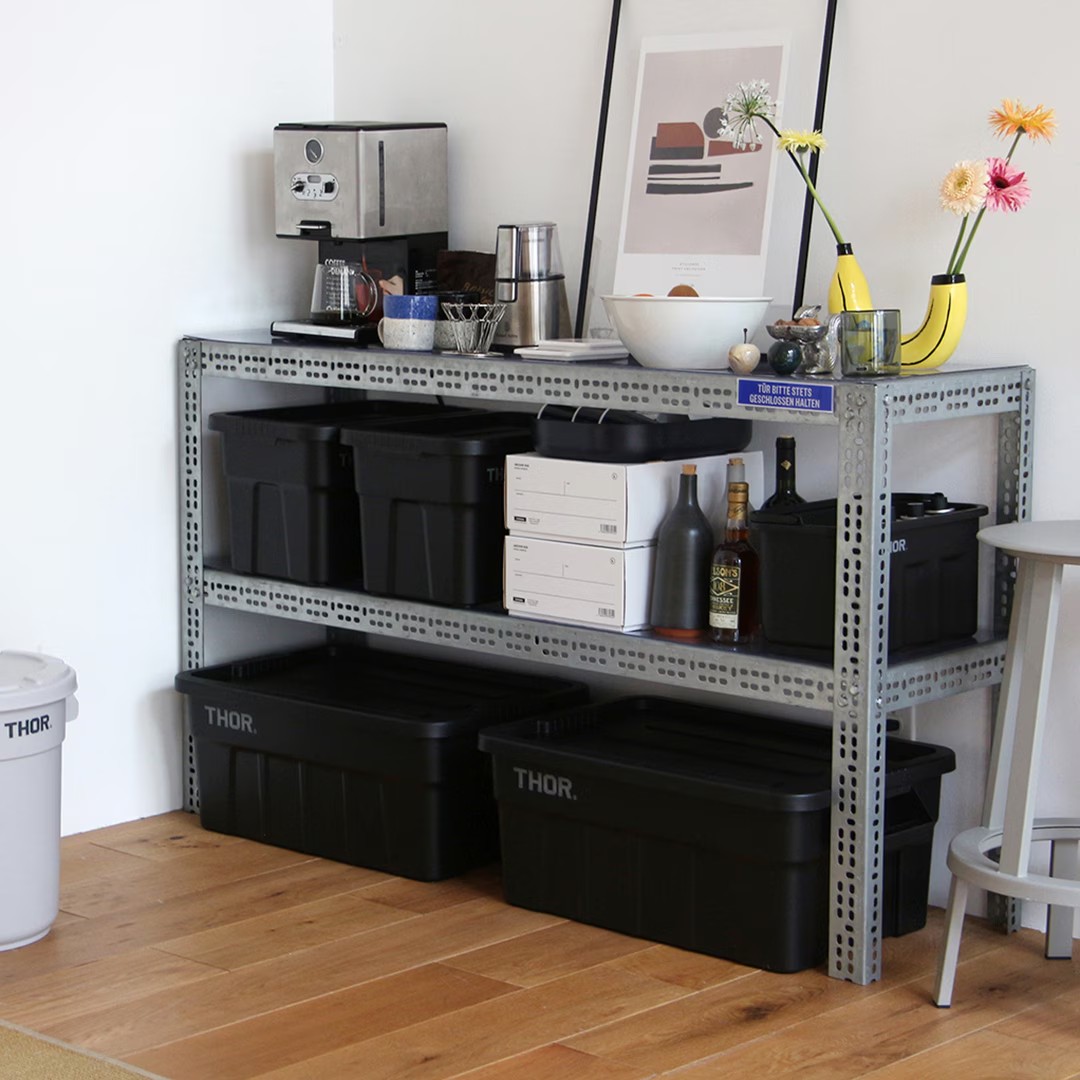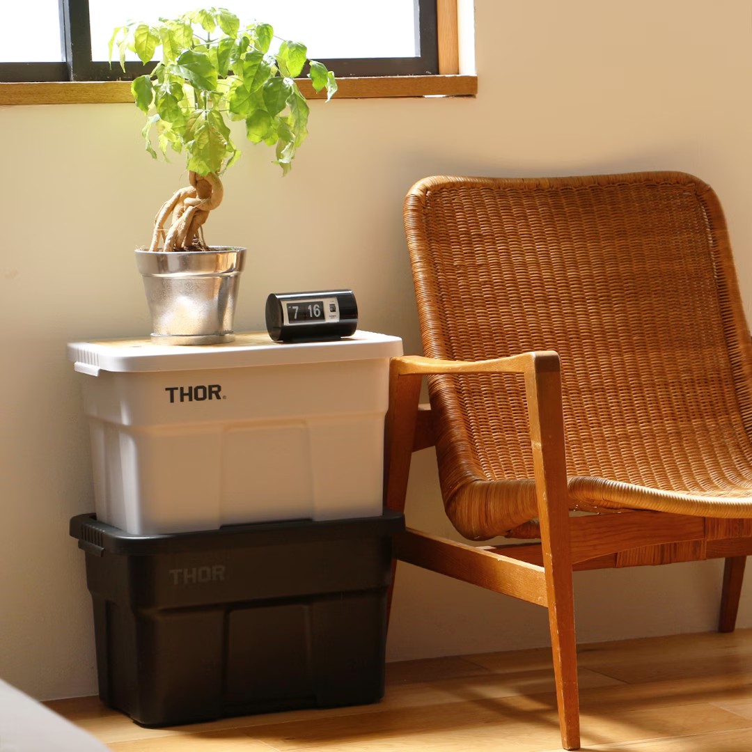 タフで無骨な雰囲気がたまらないTHOR(ソー)のコンテナボックス。軽くて頑丈、スタッキングも可能、アウトドアでもお部屋でも絵になる収納コンテナです。