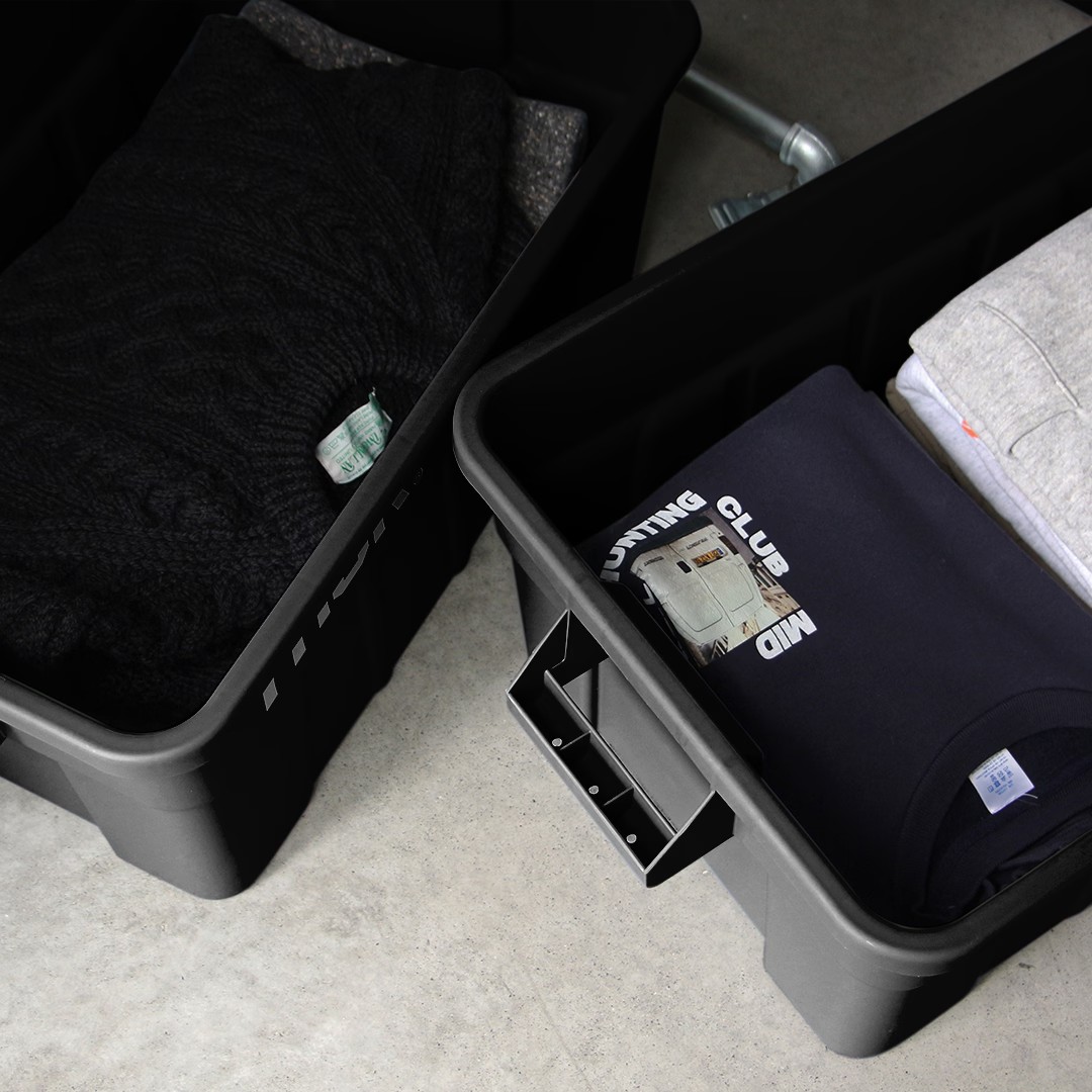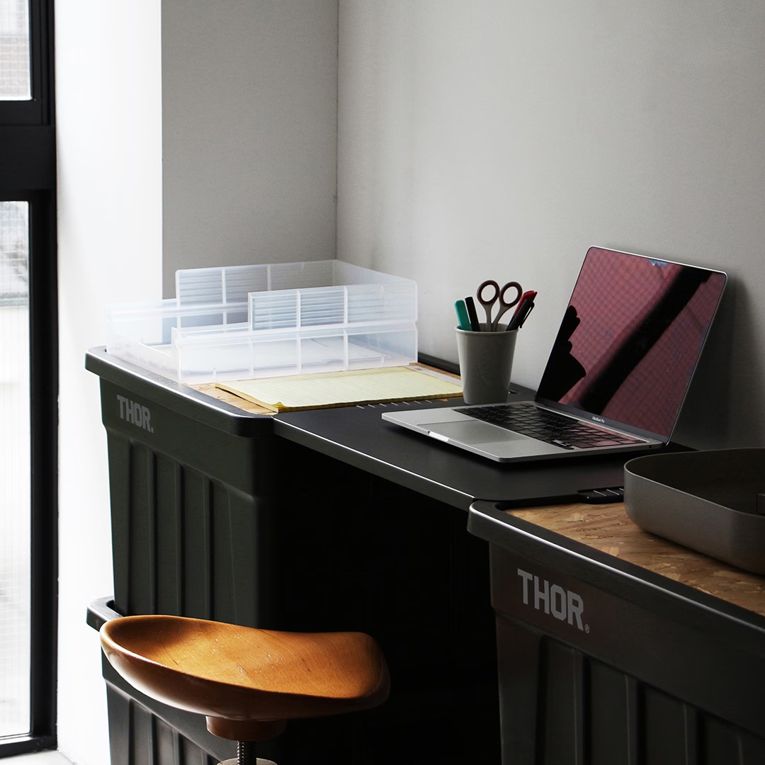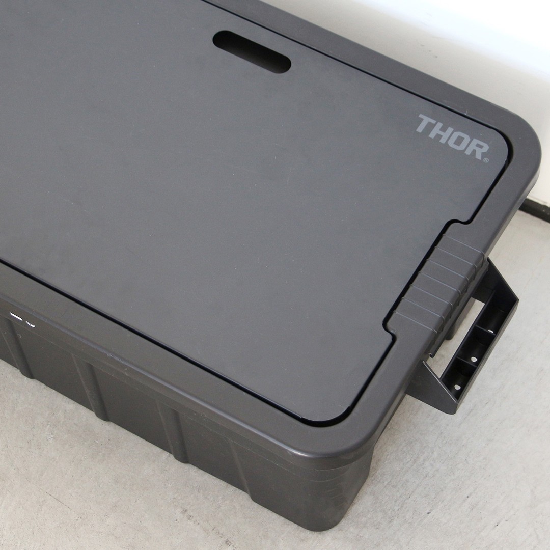 タフで無骨な雰囲気がたまらないTHOR(ソー)のコンテナボックス。軽くて頑丈、スタッキングも可能、アウトドアでもお部屋でも絵になる収納コンテナです。