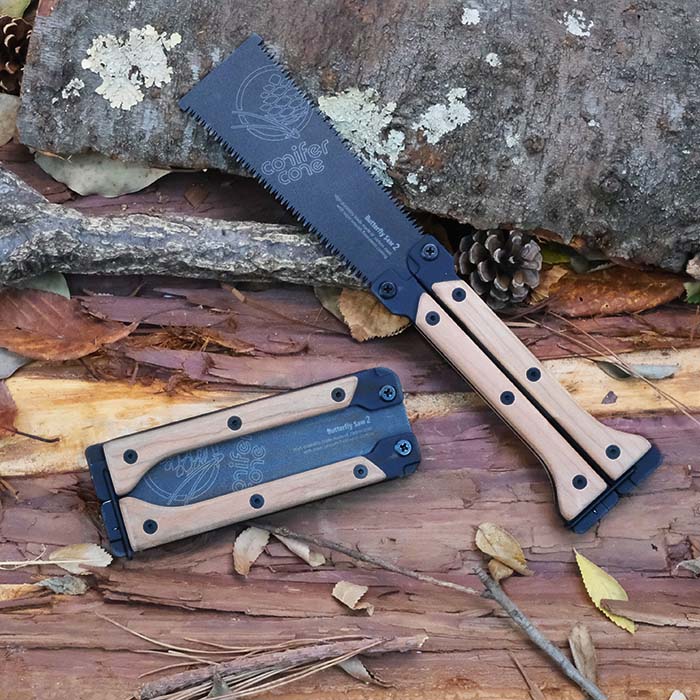日本の伝統的な和のこぎりの製法を凝縮した両刃仕様の折りたたみのこぎり