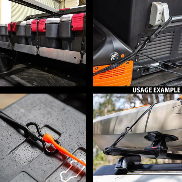■6つの穴にフックをかけることで長さ調整が可能なバンジーコード。