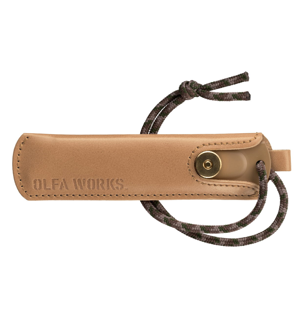 替刃式ブッシュクラフトナイフ BK1専用の天然皮革のレザーケースです。ケース上部には紐通しもあるのでお好きな紐やカラビナなどが付けられます。