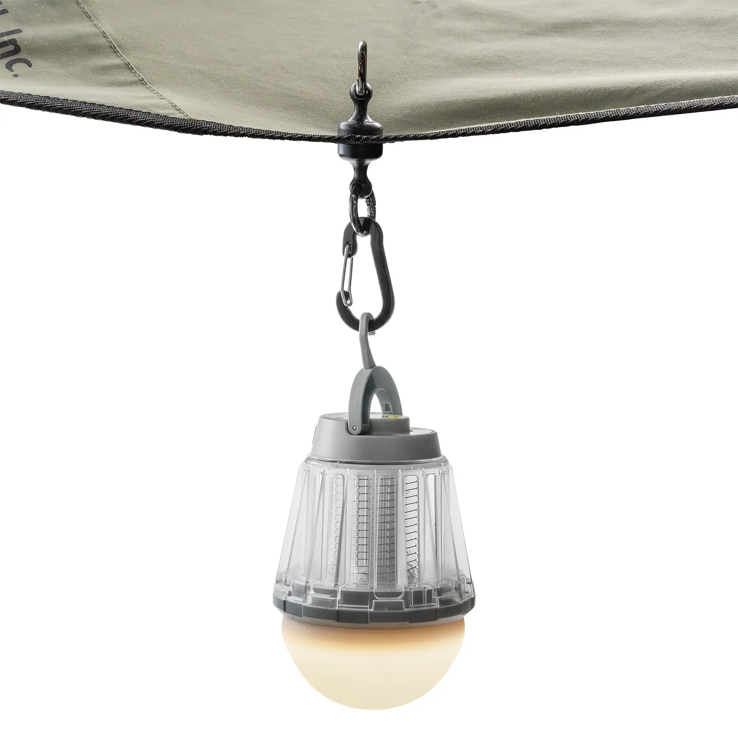 また、テントやタープの生地を挟んで、ランタンやシェラカップなど吊り下げることができます。