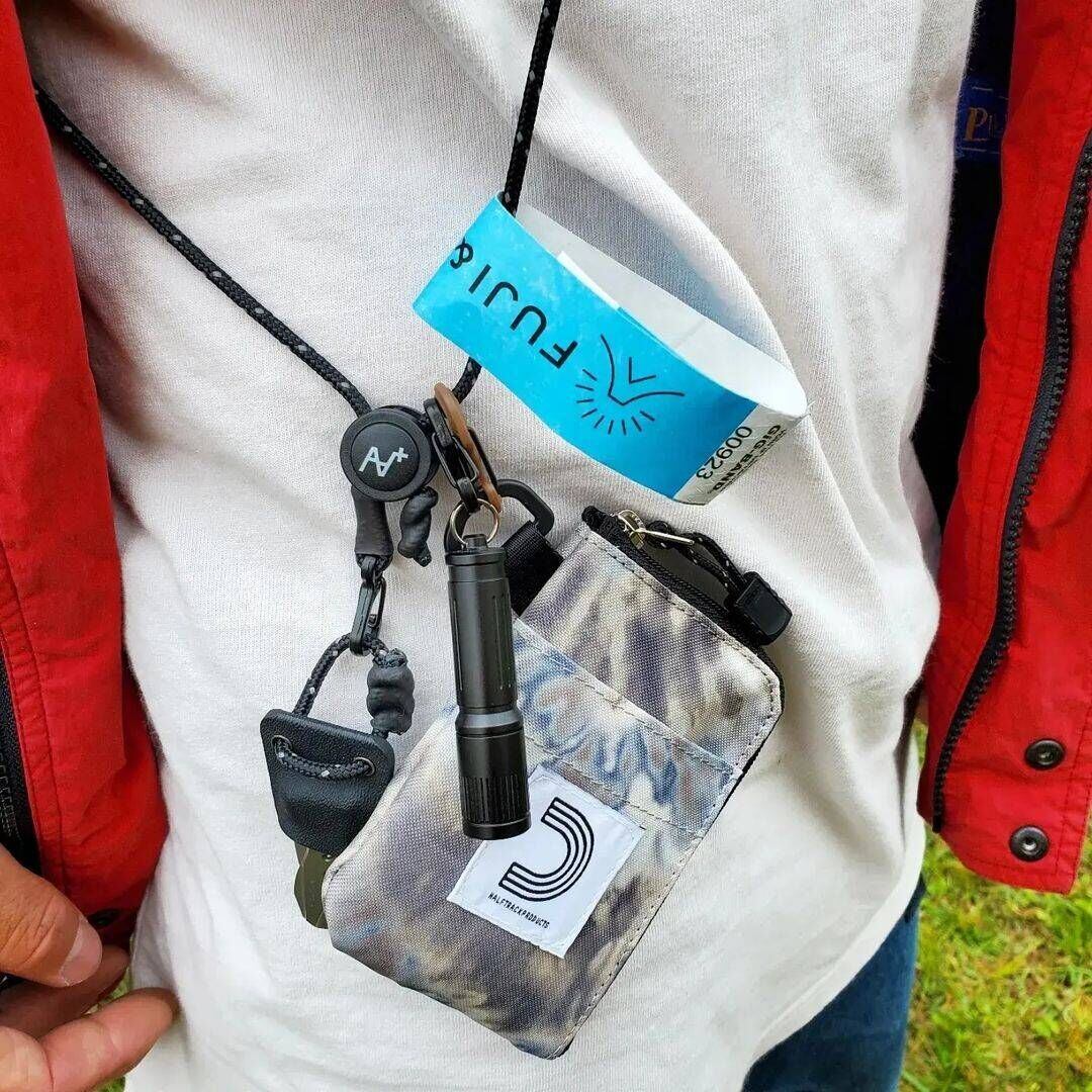素材:ポリエステル、ナイロン(ロープ)、POM(ボタン)、亜鉛合金(カラビナ)
