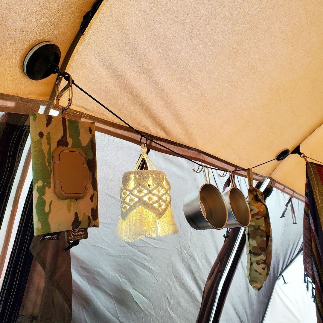 413kgの耐荷重がある反射材入りコードの両端にカラビナがついており、ロゴのボタンを押していただくことで、簡単に低くも高くもしていただけます!
