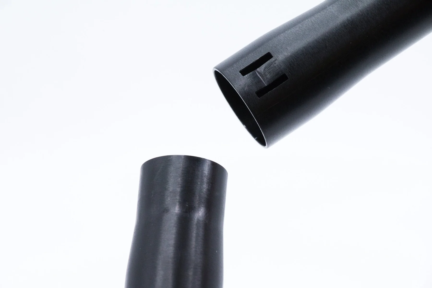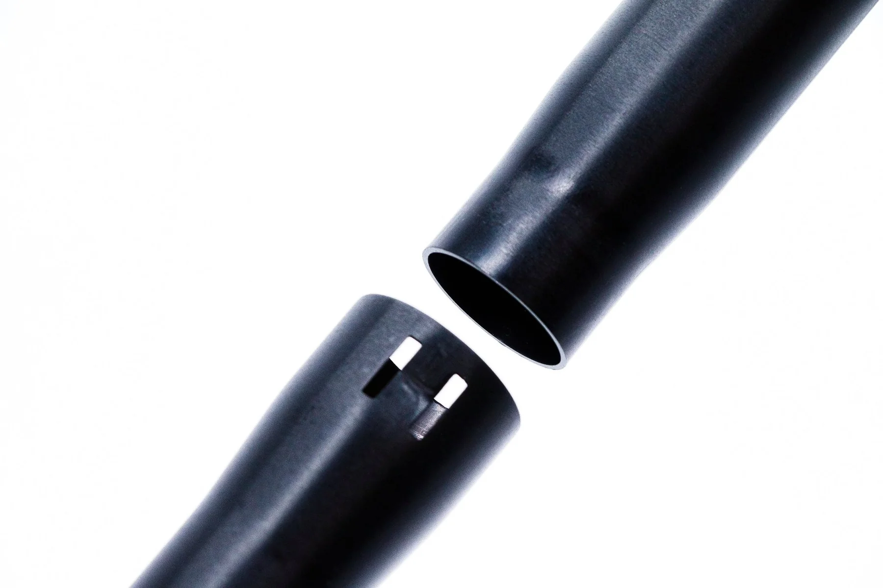 周りの空気を一緒に取り込んで効率よく空気を送る為です。より多くの空気を巻き込み、更に息苦しさを感じることなく長く吹ける事を念頭に試行錯誤を繰り返した結果、辿り着いた結論がシンプルな「太い筒」でした。