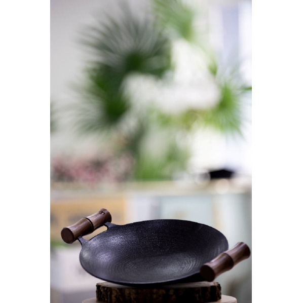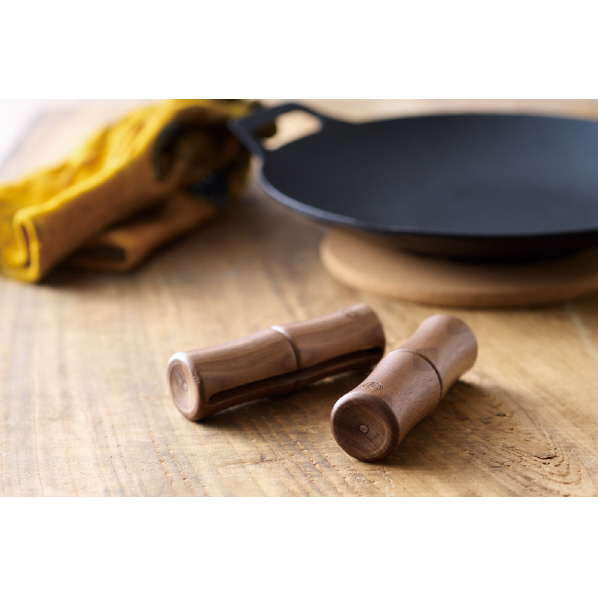 鉄板マルチグリドル専用グリップは、素材からこだわり、世界三大銘木に数えられる高級木材、ウォールナットを使用しています。
