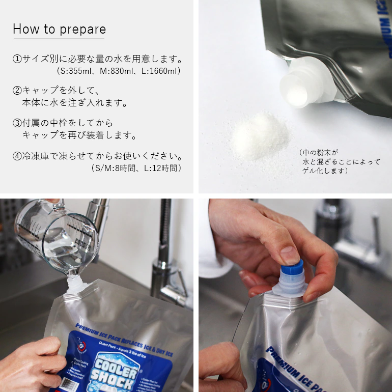 初めて使われる際は、手順に従ってパックに水を入れてご準備ください。