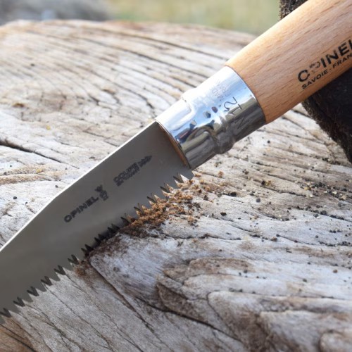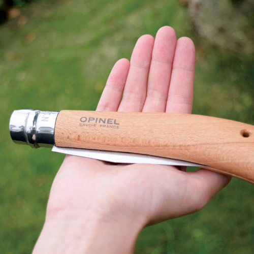 使用するときも、折りたたんだときも、刃を固定できるビロブロック付き。OPINEL独自の安全ロック機構であるビロブロックはシンプルな構造でありながら、ロックの確実性が高いことが特徴です。