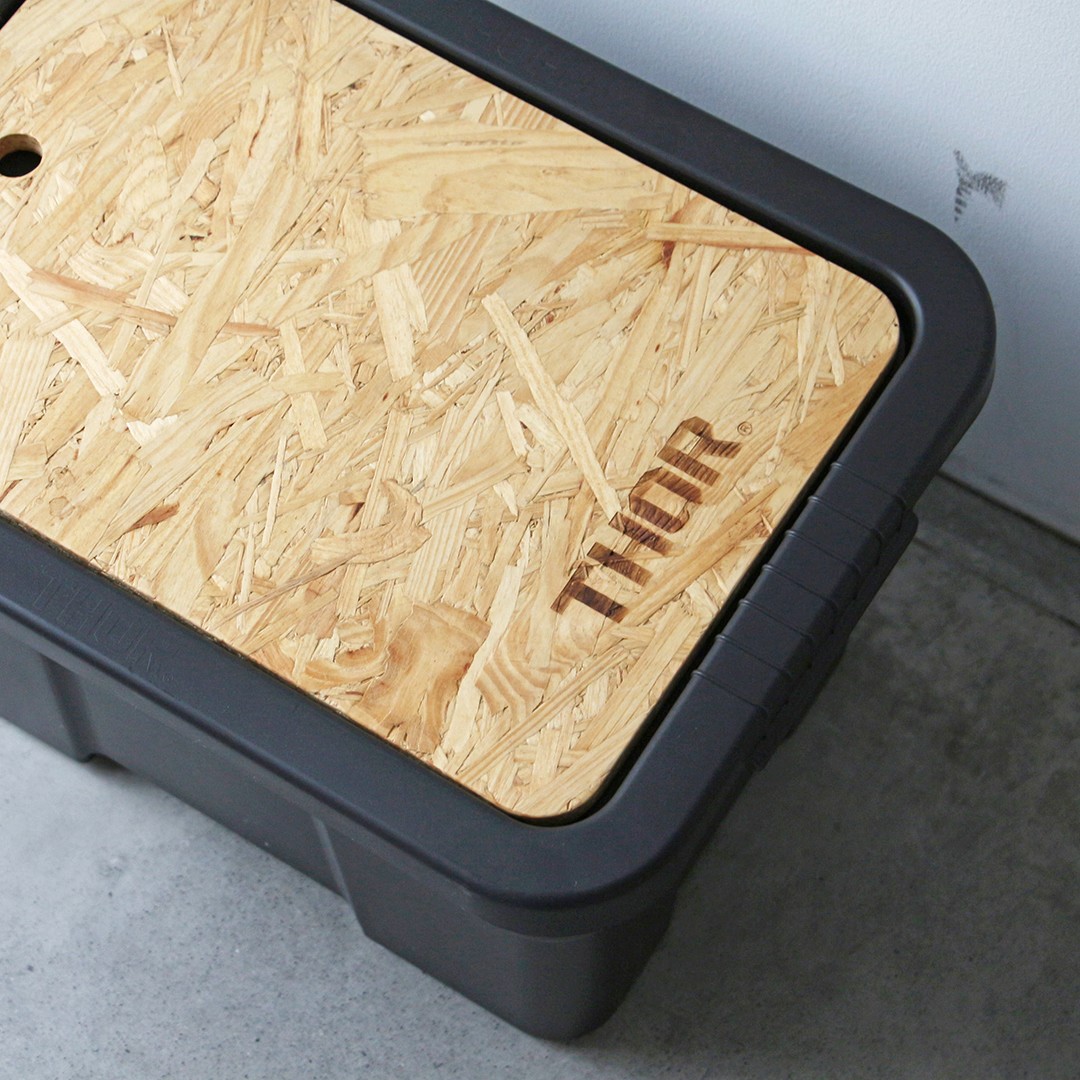 THORラージトート22Lのフタ部分に乗せることでテーブルとして使用できる専用天板。アウトドアでは簡易的なテーブル、室内ではソファ横のサイドテーブル等に。
