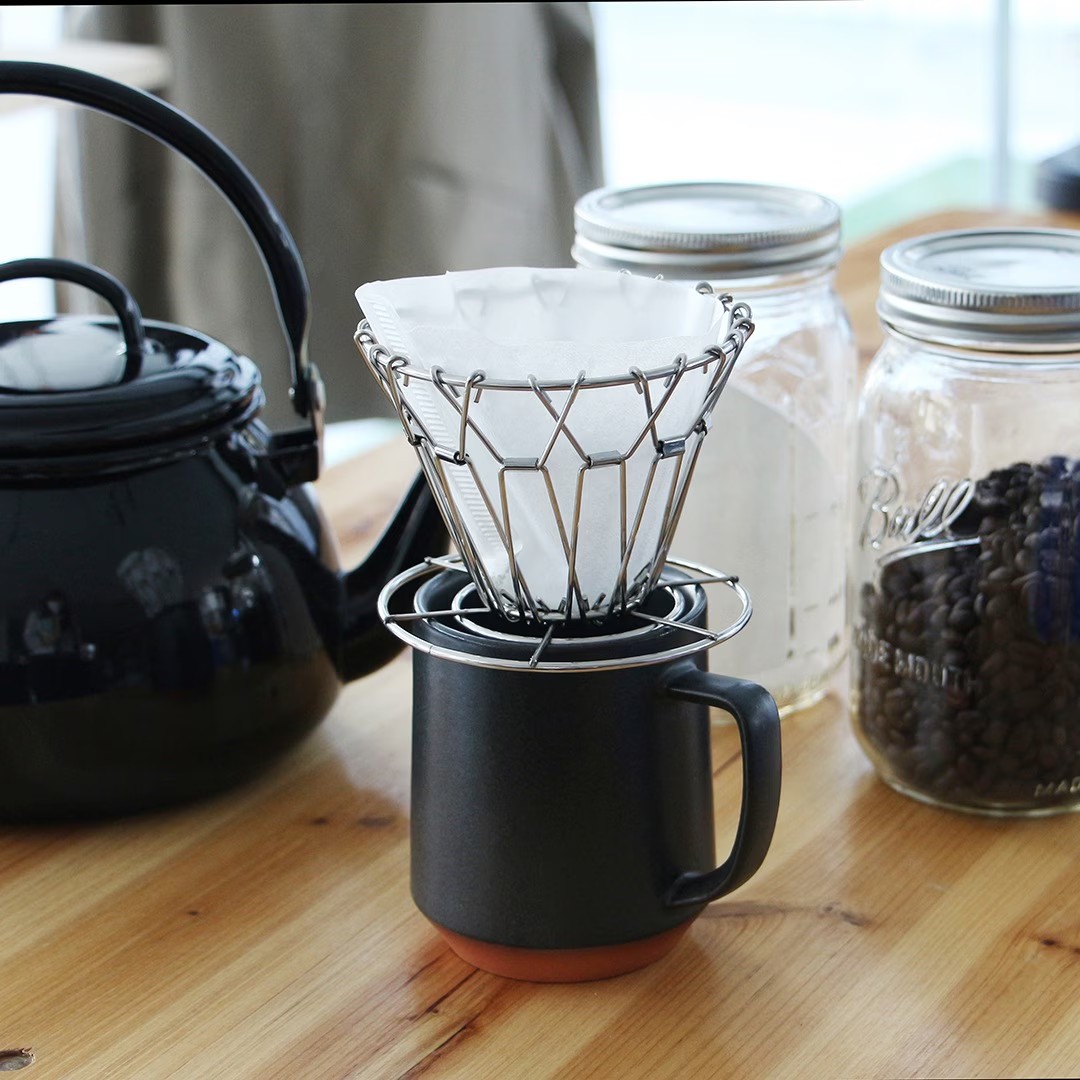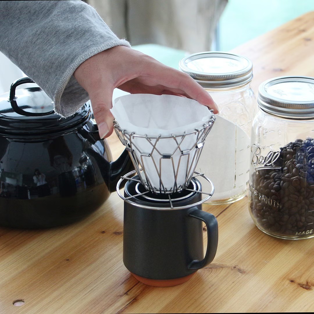 使用しない時はコンパクトに折り畳んで収納できるワイヤー製コーヒードリッパー。フィルターの接地面積が少ないため安定した抽出が可能。