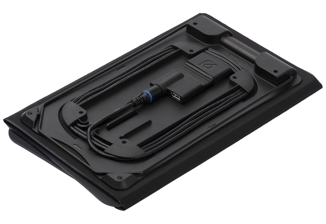 ソーラー最大出力20W。耐久性に優れキックスタンドによる角度調整に対応した高出力ソーラーパネル