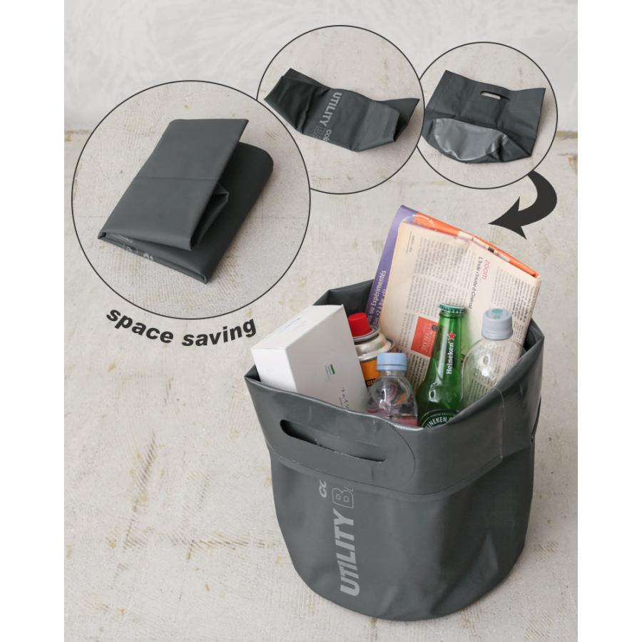 小物の収納用バッグとしてや、キャンプなどのアウトドア、災害時には水を運ぶバケツとしてだけでなくシンク代わりとしても活躍します。