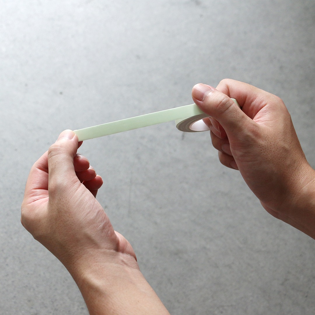 高輝度の蓄光材と強粘着を用いたグローテープ。