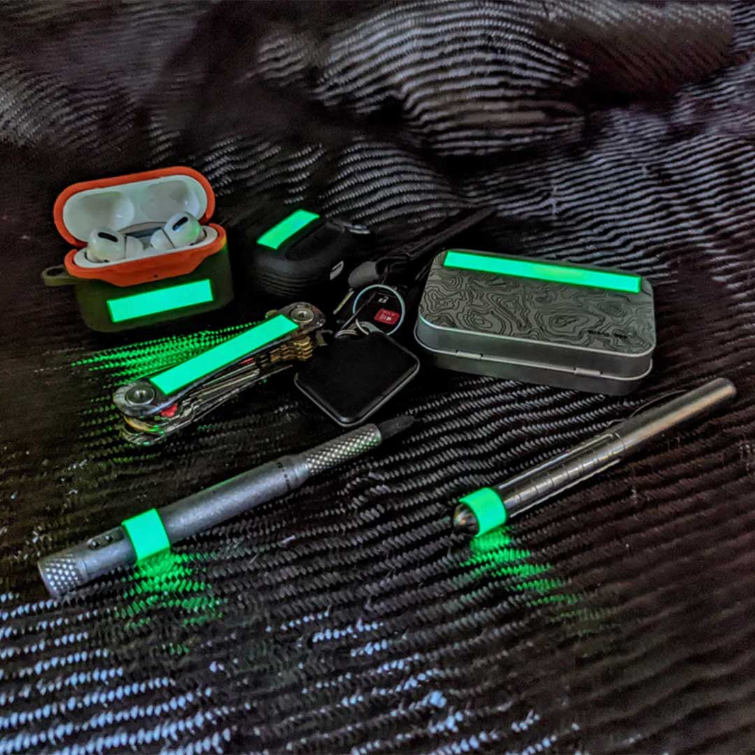 キーリング等が取り付けることができない場所や物、ギアに直接貼り付けることによって暗闇でも容易に見つけることができます。