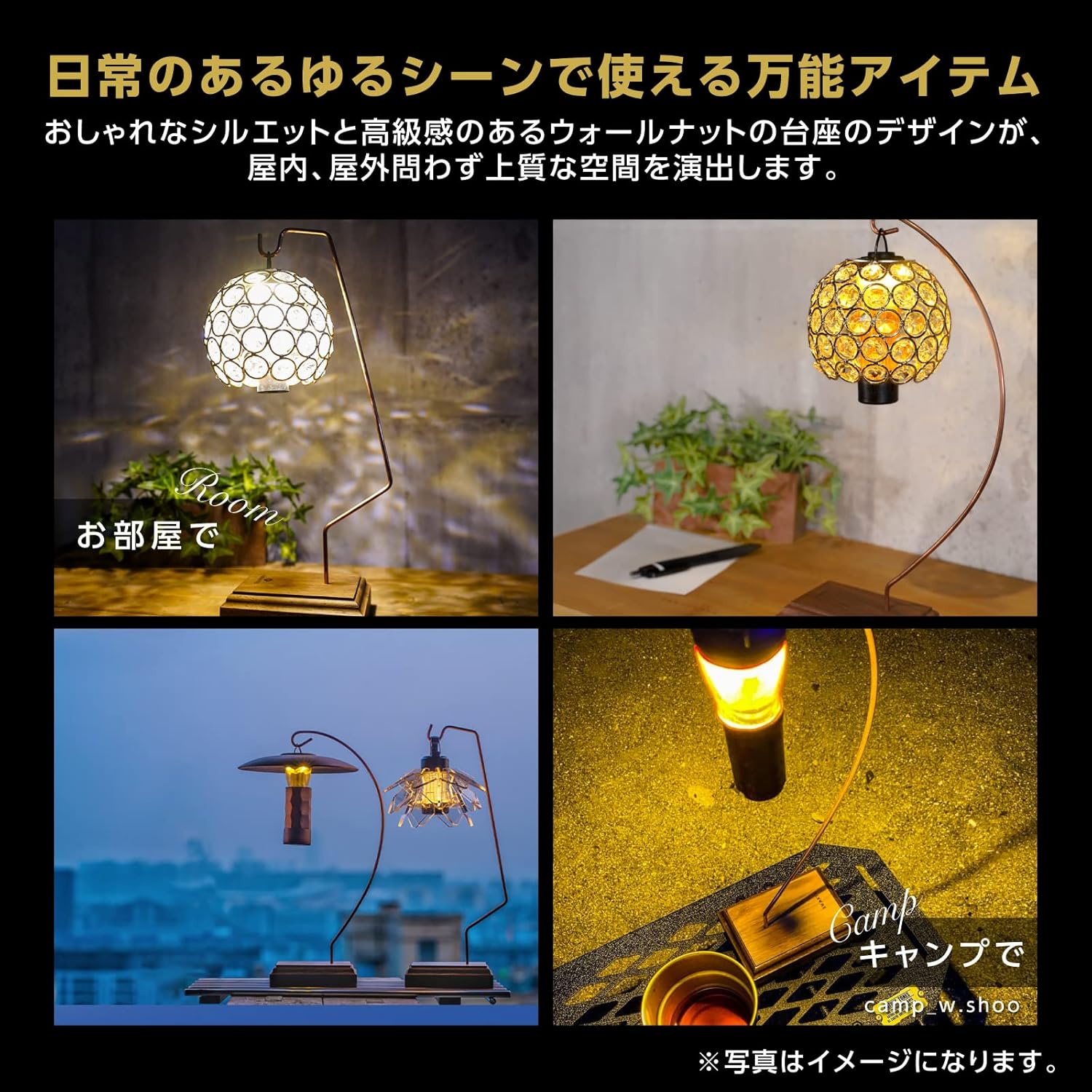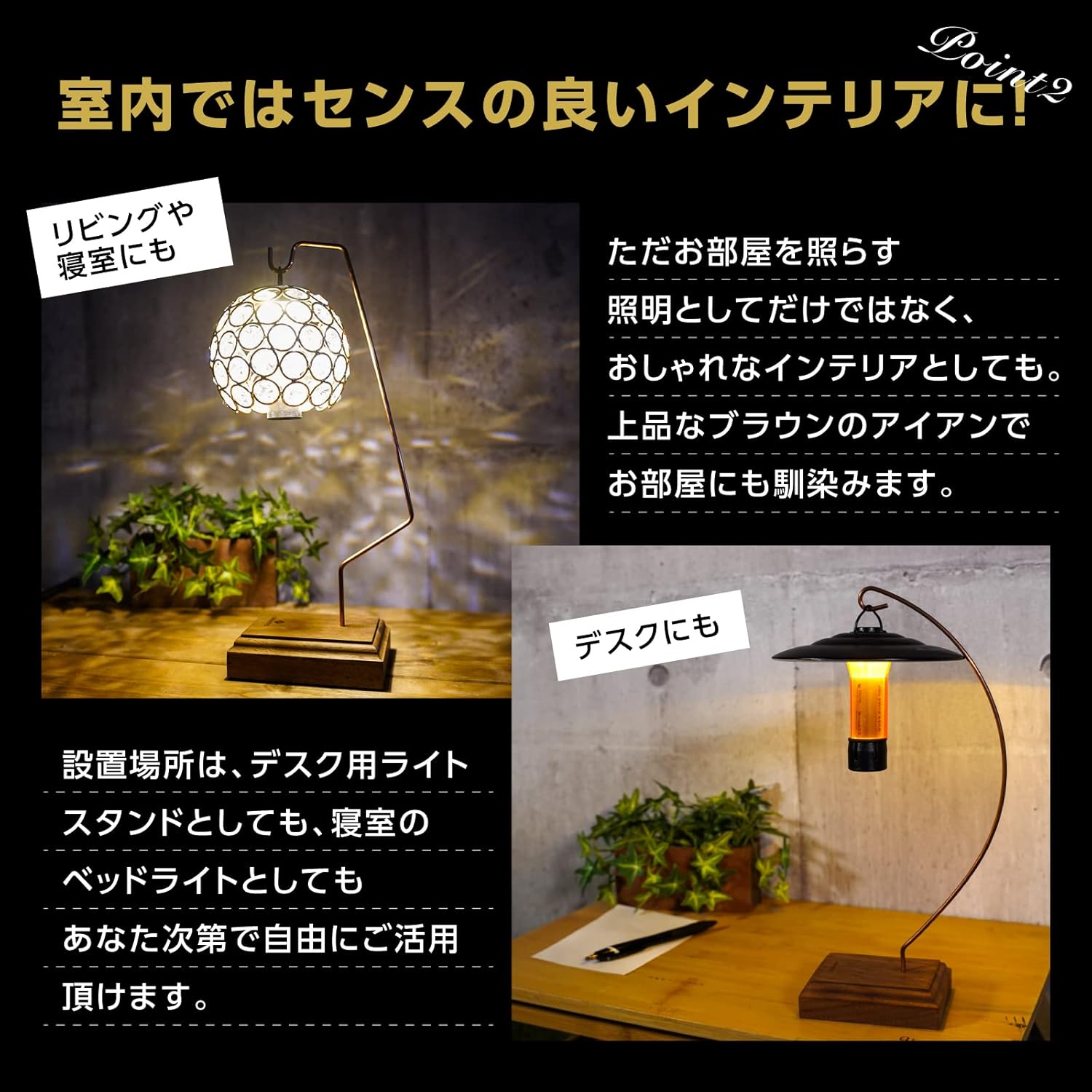 「卓上に明かりを置ける!キャンプサイトをロマンチックに演出する」ランタンを吊るすことができるので、卓上に明かりを置くことができます。また、スタンドを使用することで、ランタンの明かりをより安定させることができます。キャンプサイトでは、ロマンチックな雰囲気を演出することができます。