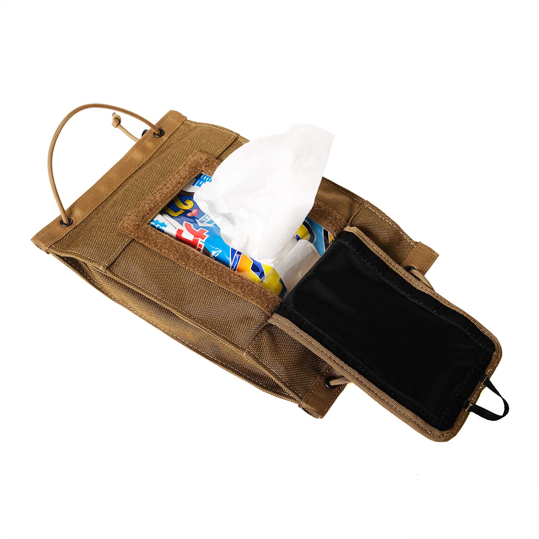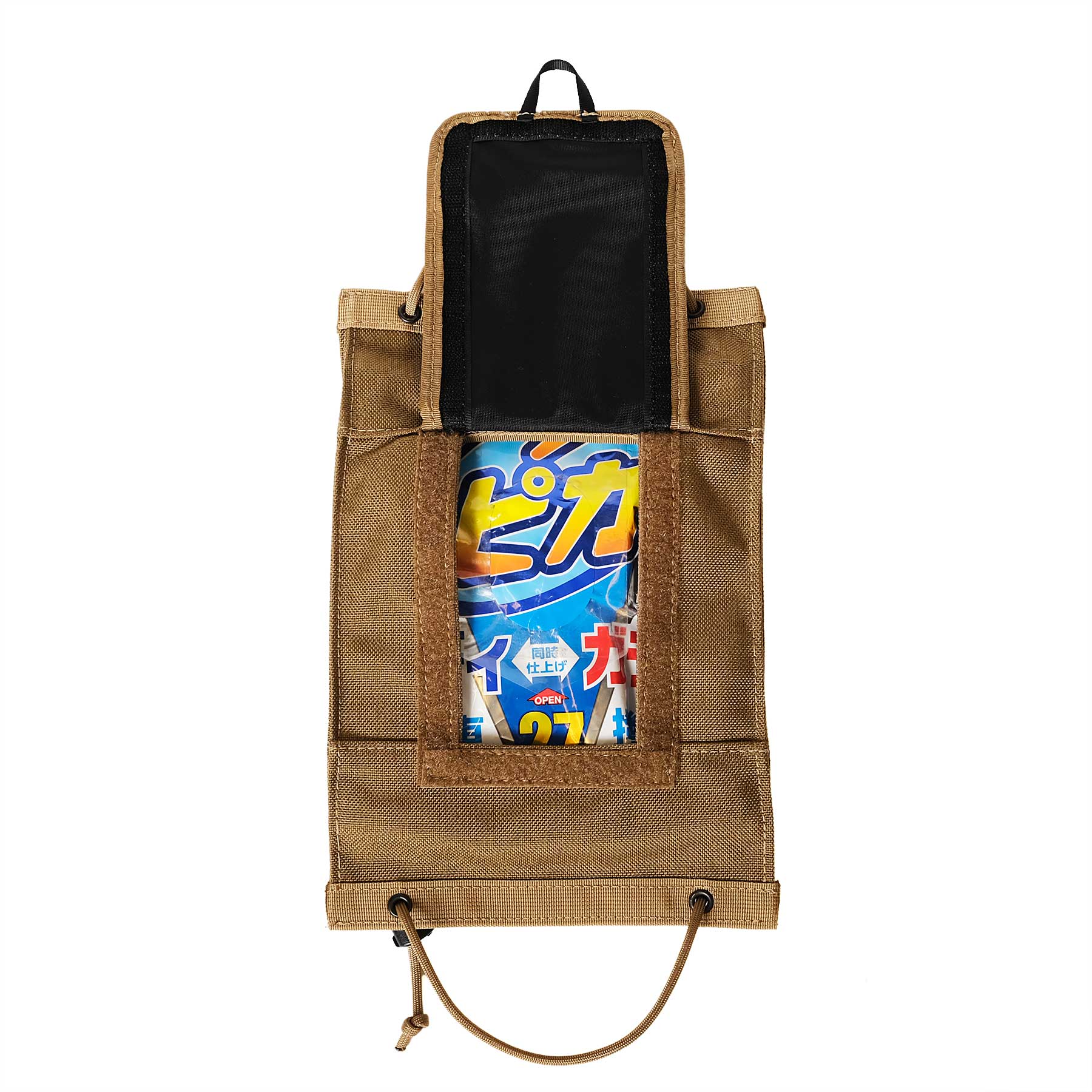 蓋を受け側の小さなベルクロ(オス側)に当て付ける事で蓋を開けた状態で固定できます。