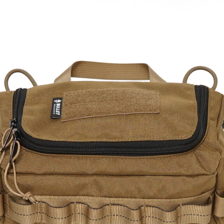背面上部には持ち運び用のハンドルと、2か所のパラコードループを設置いたしましたので、ループにS字カンやカラビナを介してハンガースタンドにぶら下げてご使用いただく事も可能です。