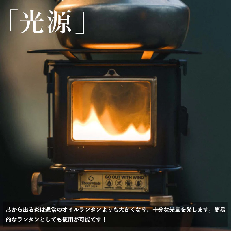 芯から出る炎は、通常のオイルランタンより大きな幅がありますので、簡易的なランタンとしても!