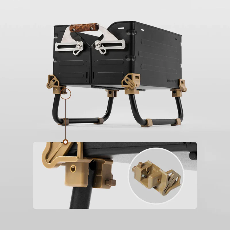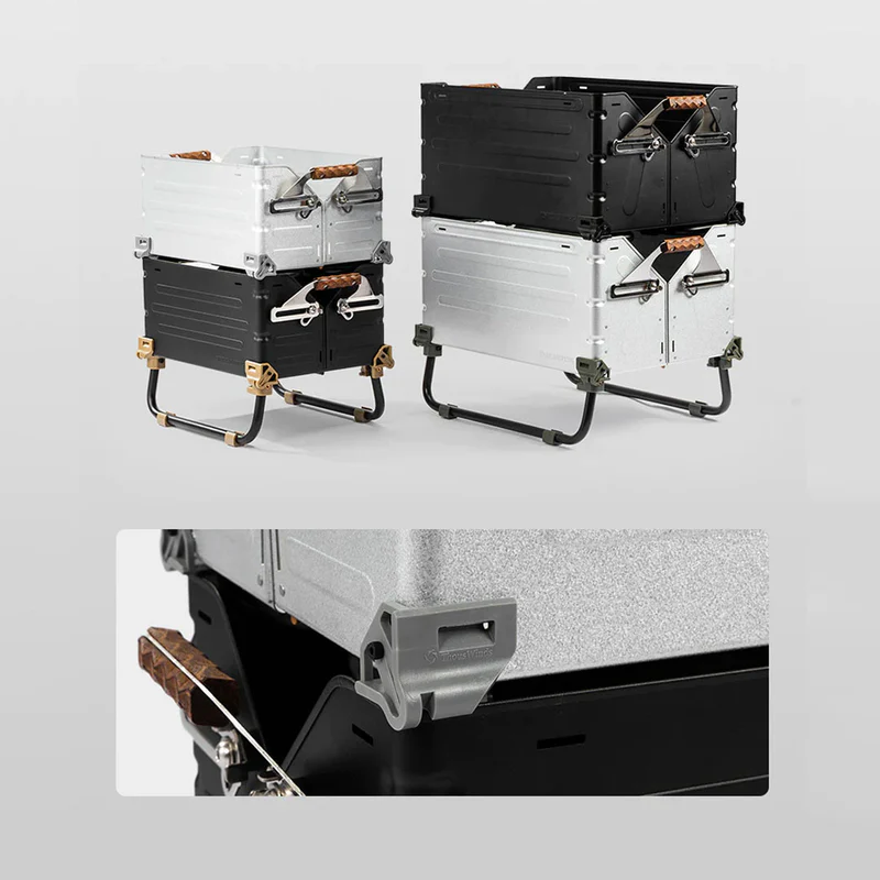 こちらのパーツを接合いただくことにより、脚を広げた状態で約13cm高くなり、天板を載せてテーブルとしてのご利用が格段にし易くなります。またしゃがまず中身の出し入れが出来、使い勝手もUP。
