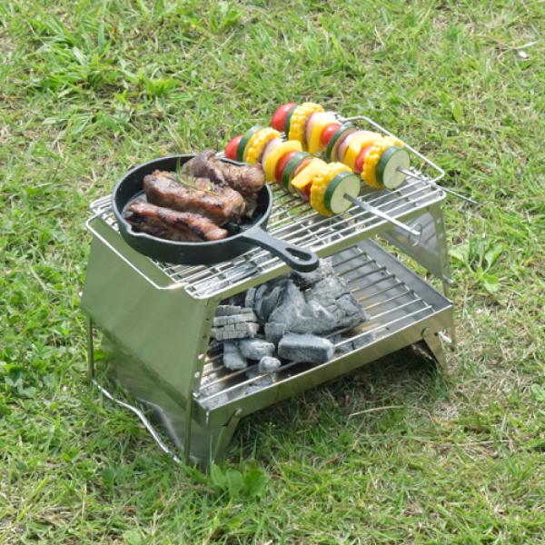 5段階で高さ調節可能な折りたたみ式ゴトク「アジャスタブルグリルS」と焚き火台「ファイヤーグリルベース」、BBQに便利な「焼き網」がセットになりました。焚き火、調理、BBQと幅広くお楽しみいただけます。