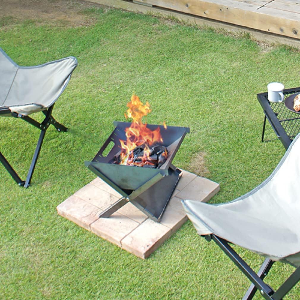 どっしりとした重厚感あふれる、日本製の焚き火台です。フラットに収納でき、持ち手も付いているので持ち運びに便利。少人数でのキャンプやBBQに最適です。