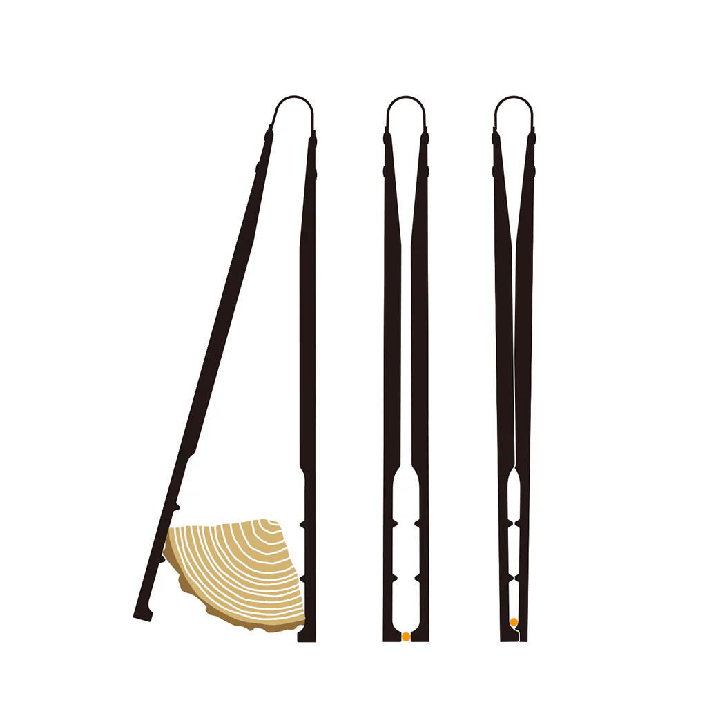 先端をズラして使うと細い枝もつかめる設計。超軽量70gなので荷物を減らしたいソロキャンパーやツーリングキャンプに最適です。