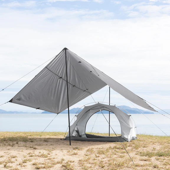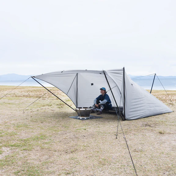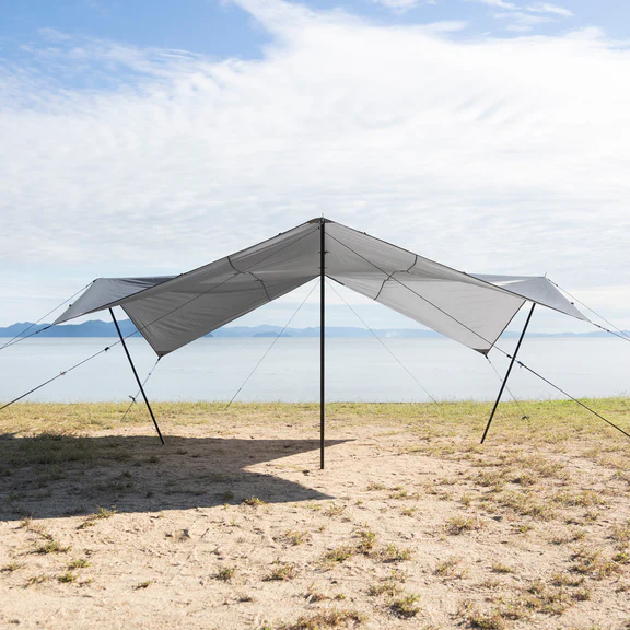 シーンに合わせて用途を変える、シンプルかつ機能美が備わったタープです。