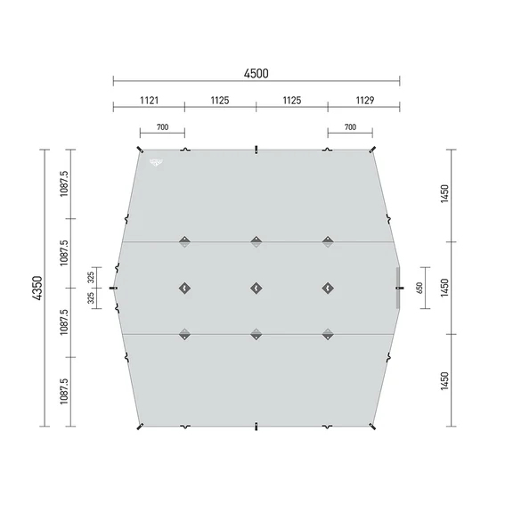 計36ヵ所 (外周部分18ヵ所、両面18ヵ所) のグロメット・ループ付き。シンプルなレクタ型でさまざまな張り方のアレンジが楽しめます。