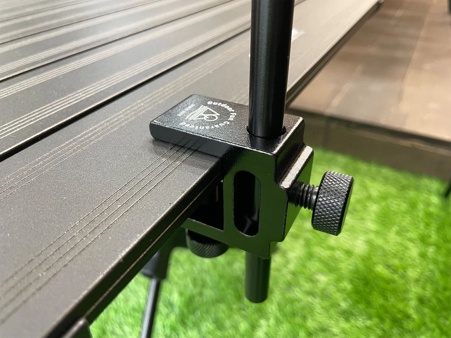使用する環境によって、テーブルに固定、または地面に固定が選べる2WAYスタンド