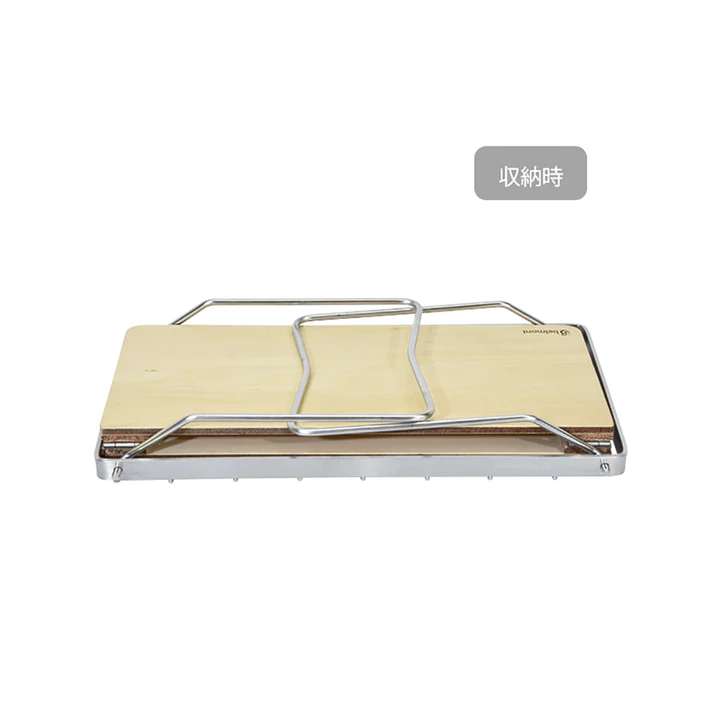 ワイド五徳に木製の天板を装着して使用するミニテーブル。