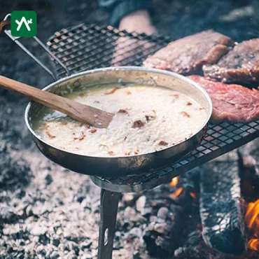 ●オープンファイアパンSと組み合わせ鉄板料理を楽しむことができます。