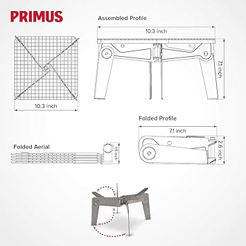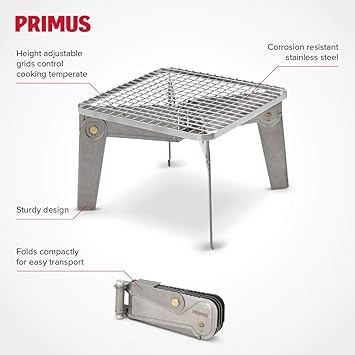 30cm弱四方のコンパクトな焚火用グリルスタンドです。火の状態を見てアームを伸ばし焼き網を載せる高さを調整することも可能です。