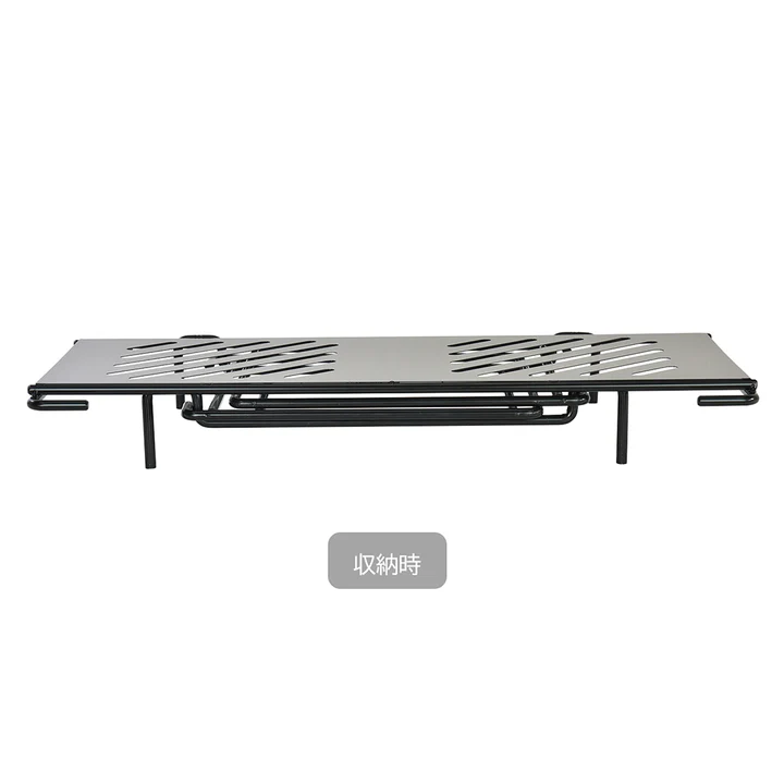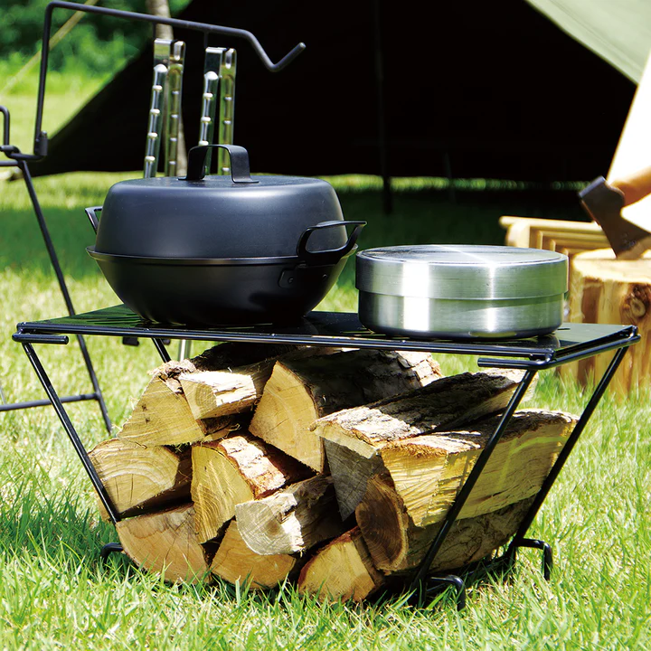 上部の天板は耐荷重30kgあり、重いものはもちろんOK!アイアンなので熱いダッチオーブンなどの直置きも可能です。