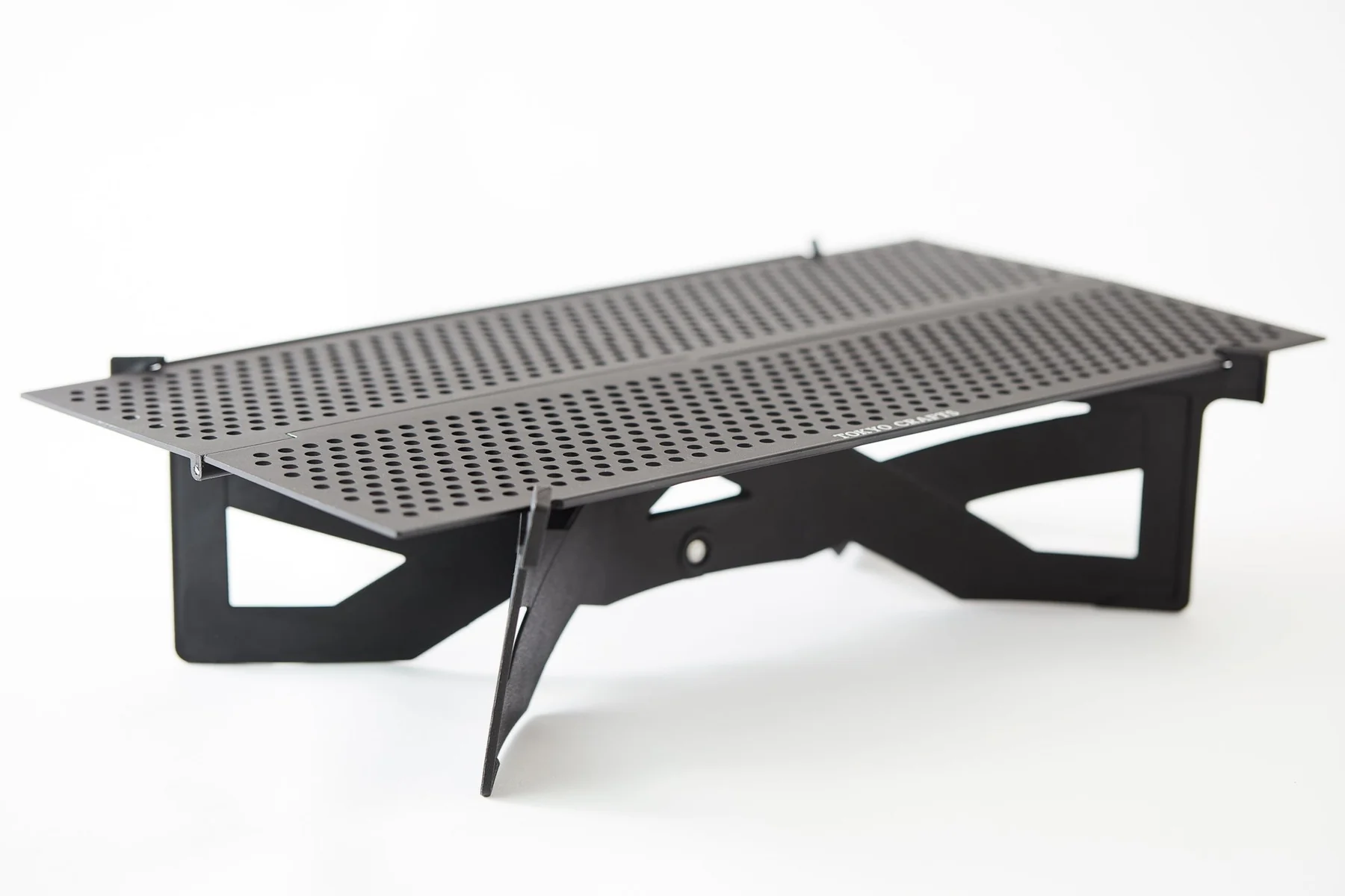 バーナーとクッカーを無理なく同時に載せられる横長設計。軽量でスリムな収納形態。ソロキャンプやトレッキングなど幅広いシーンで活躍するマルチなミニテーブルです。