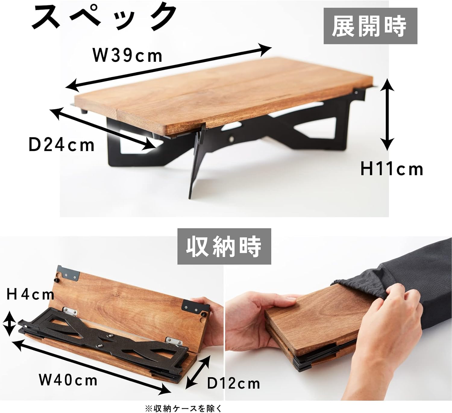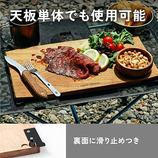 【普段使いも可能】ジカマナイタはキャンプだけでなく、自宅での普段使いにも最適です。カッティングボードとして、食卓に華やかさを加えることができます。折りたたみ可能な設計により、コンパクトに収納できるため、キッチンやアウトドアでの持ち運びもしやすく、収納ケースも付属しています。