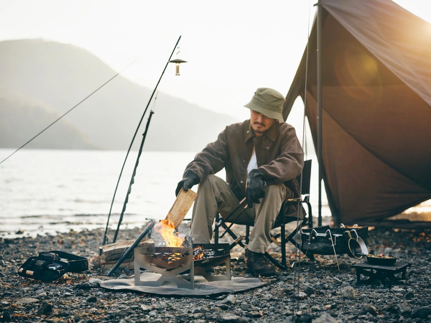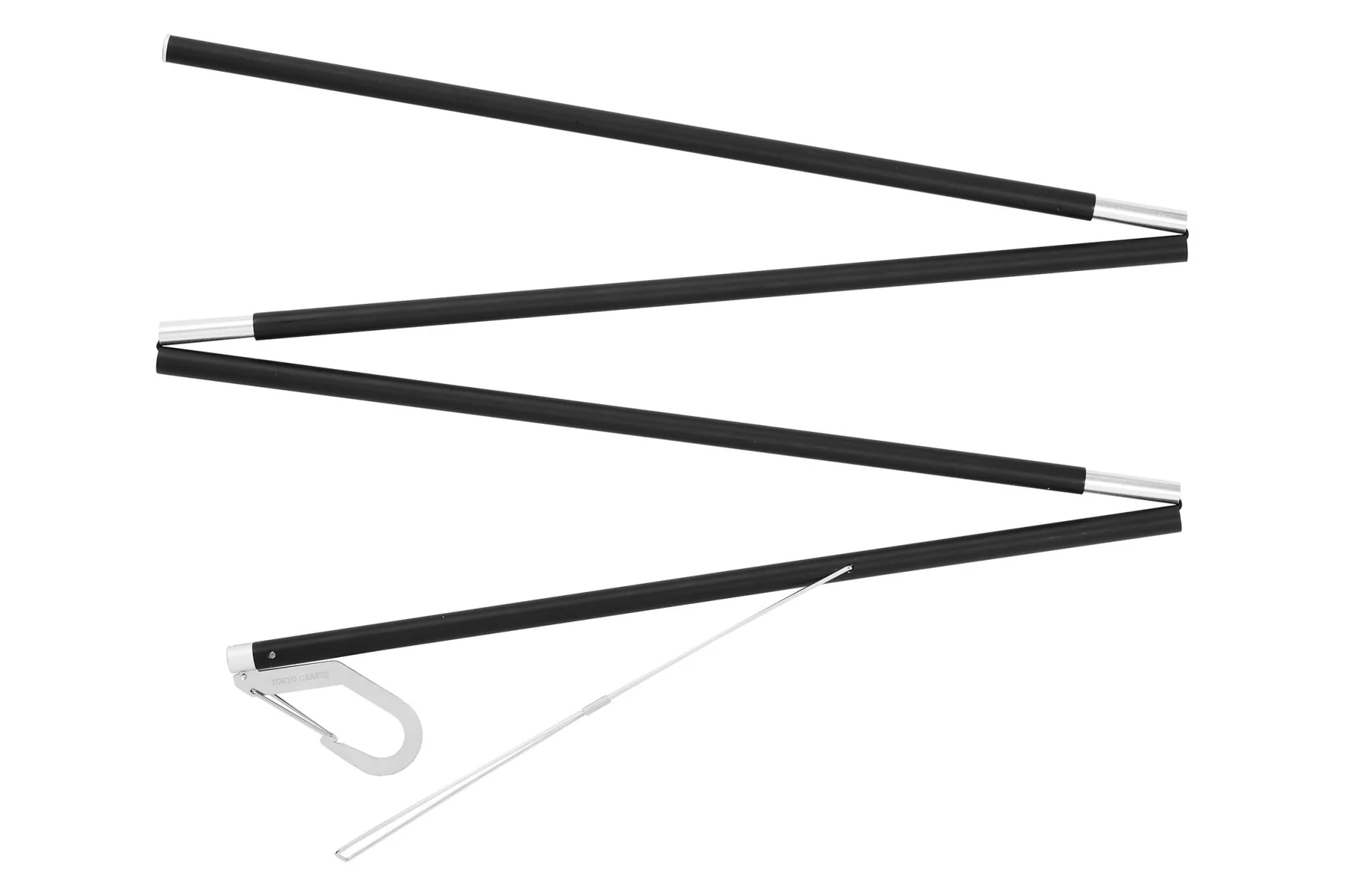 高さ・向き・角度を自分好みに調節できるランタンスタンド。ベルトを引っ張ることでポールがしなり、ランタンの高さを変えられます。収納時はスリムな縦長で、バックパックやコンテナにすっきり収まります。