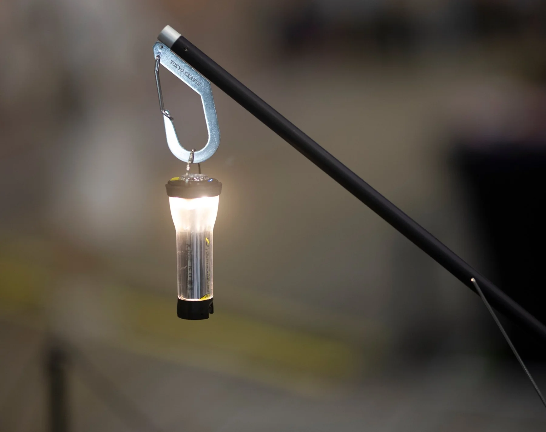 フック部分はカラビナのような形状なので、一度フックに引っ掛ければ外れて落ちることはありません。取り外しも簡単です。(※燃料を使うランタンは使用不可)