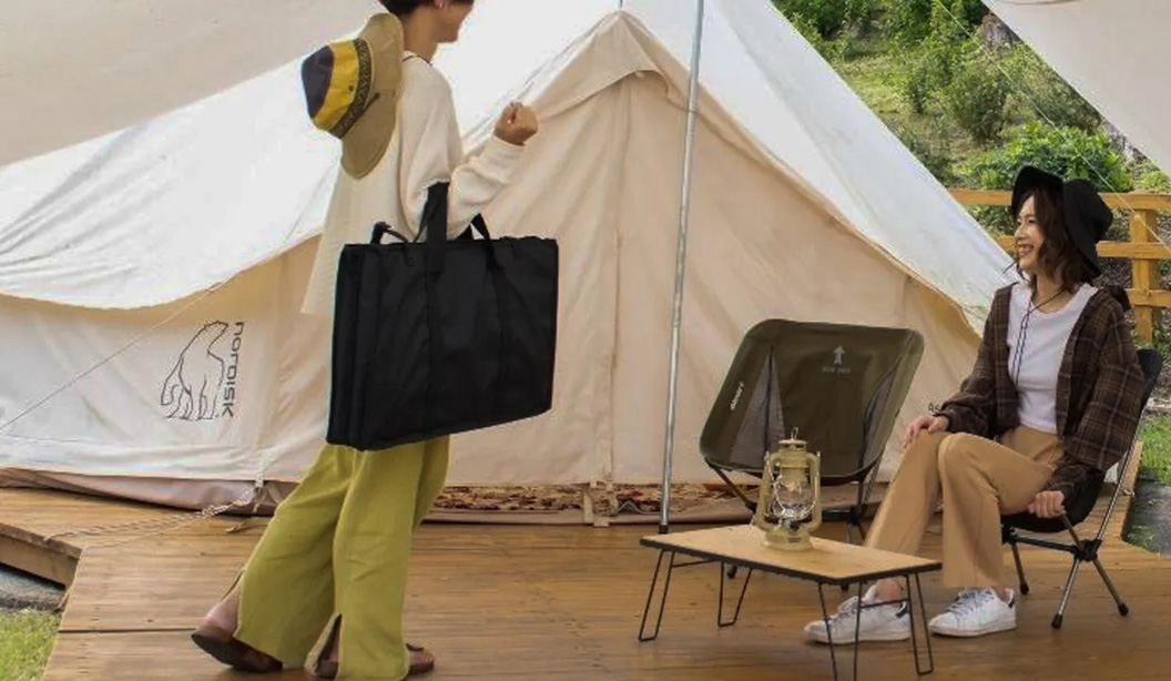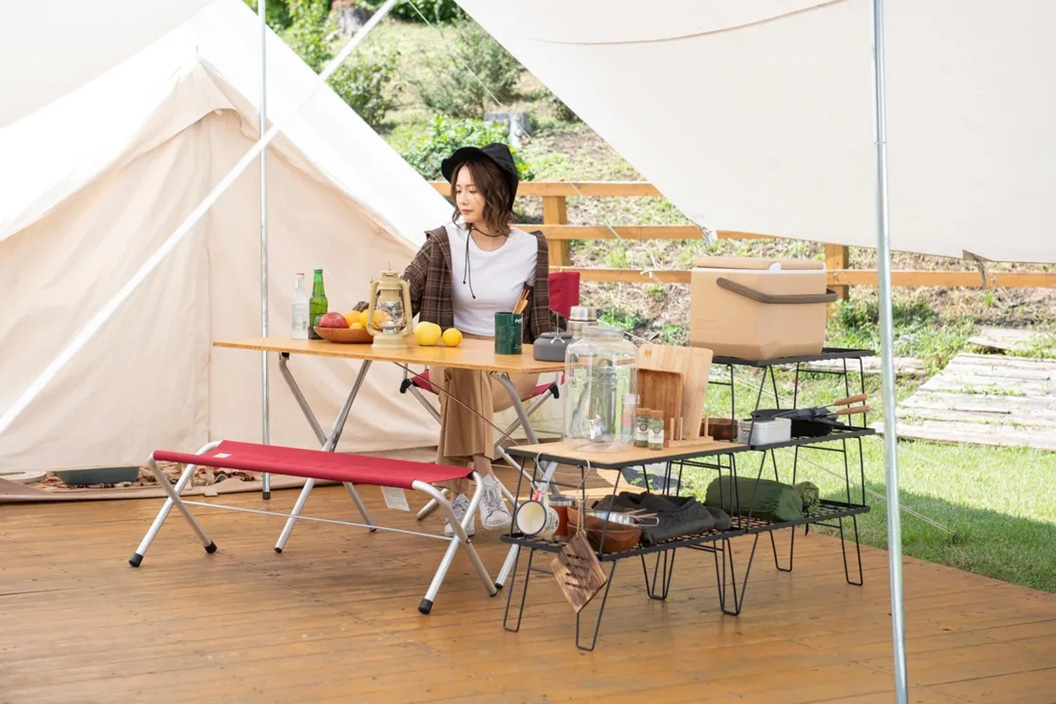 ローテーブル:サイドテーブルとして食器やマグを置けますが、オプションの天板を追加するとオシャレなローテーブルに変身します。ソロキャンプでもファミリーキャンプでも大活躍します!