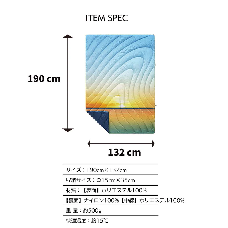 更にBluesign認証、USDA認証のテフロン加工をほどこしてあるので、小雨や雪を弾き、レジャーシートとしても使えます。また洗濯機で洗えるのもうれしいポイント。ひざ掛けはもちろん、シェラフの上にかけ布団代わりにしても使える万能サイズです。
