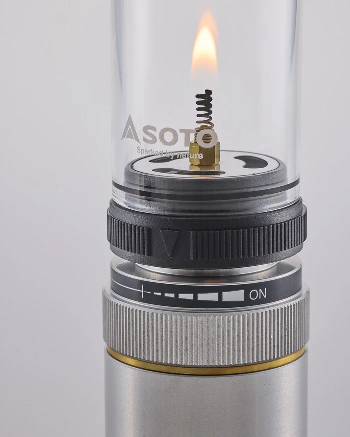 どちらにも取り付けができるガスランタン。